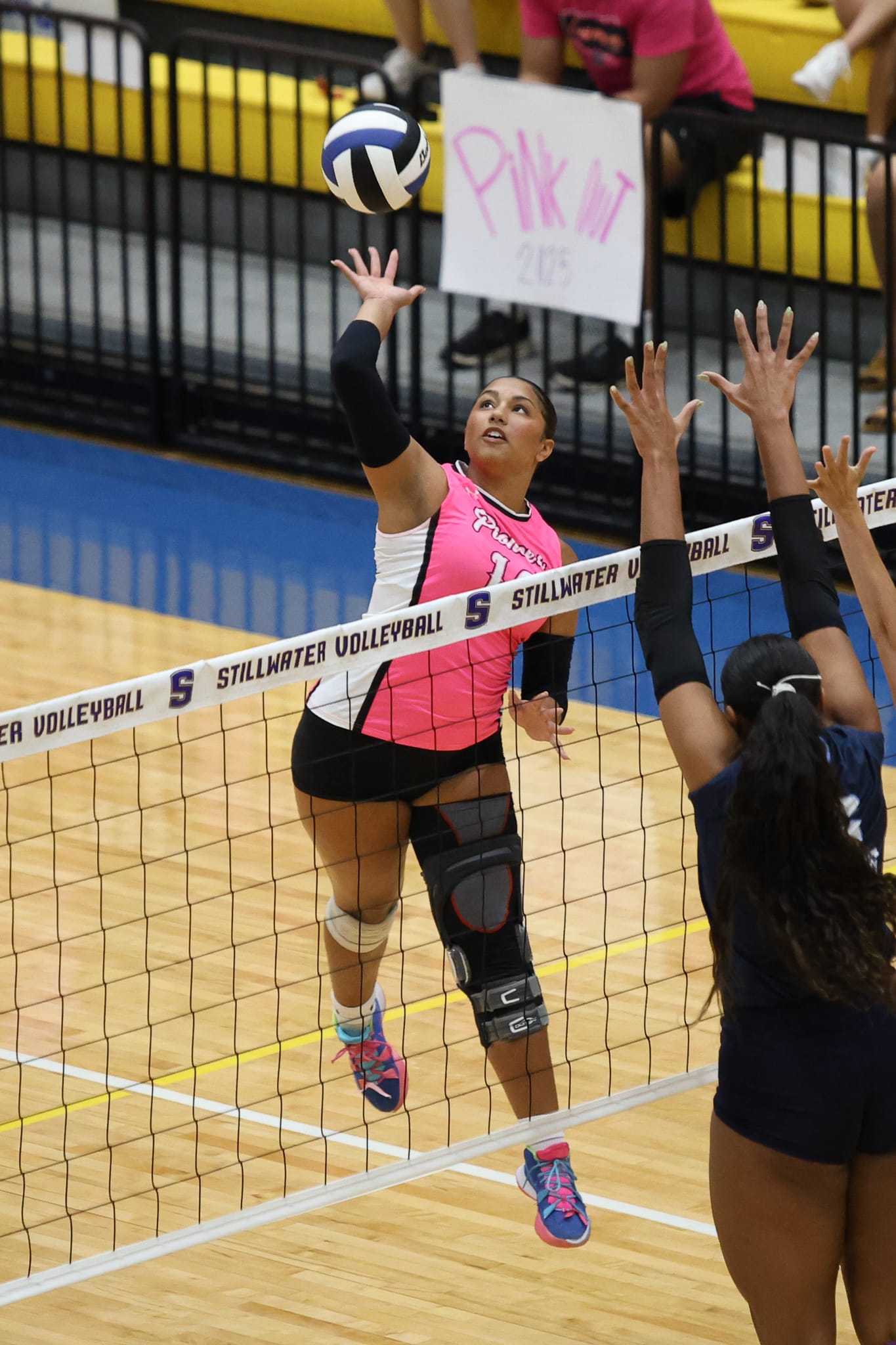 Stillwater sophomore Ivan McFarlin II stuffs a two-handed jam during a Pioneer blow-out victory versus Capitol Hill Dec. 2, 2025. – Photo by Chris PetersStillwater sophomore Khalia Moore went 8-of-8 shooting with a team-high 18 points in the matchup against Edmond Memorial Dec. 12, 2025. – Photo by Chris PetersStillwater's Grace Tonga makes a base hit during the Lady Pioneer win over Ponca City on Aug. 26, 2026. – Photo by Chris PetersStillwater Senior and long-time team manager Bonnie Rutherford steps up to the plate before hitting an unofficial in-field home run on the first pitch against the Norman Tigers Sept. 15, 2026, at Couch Park. – Photo by Chris PetersGraycie Murray takes off down the third base line towards home plate during Stillwater softball's epic slugfest victory against Southmoore on Oct. 9, 2025, earning the OSSAA Class 6A Regional title. – Photo by Chris Peters Jaelynn Wilhelm on deck during the Lady Pioneers' stunning comeback victory against the Moore Lions Aug. 14, 2025, at Couch Park. – Photo by Chris PetersSouthmoore's Lucely Kutz attempts to catch a line drive during the regional championship game against Stillwater on Oct. 9 at Couch Park. – Photo by Chris PetersStillwater senior Alyssa Thomas tallied 2 kills against Edmond North during the Lady Pioneers' annual PINK OUT match-up in Pioneer Fieldhouse on Sept. 23, 2025. – Photo by Chris PetersSenior libero Taylor Rattay and teammates celebrate Rattay's ace during the Lady Pioneers' upset of then #1-ranked Norman Tigers on the road. – Photo by Chris PetersAlumni, sports fans and the community meet Eric Morris, Cowboy football's new head coach. – Photo by Chris Peters