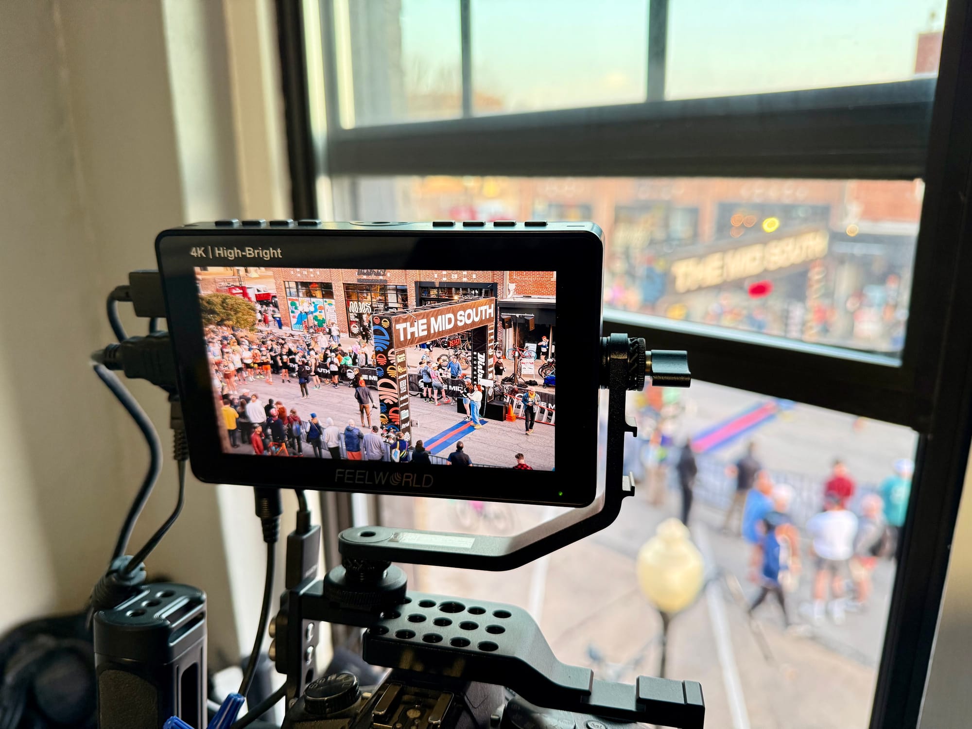 It was Friday morning, March 14, 2025, and I was helping Trey Nixon livestream The Mid South 50k finish line. Spectators, event staff, and cyclists lined 7th Ave. downtown to cheer on the finishers.