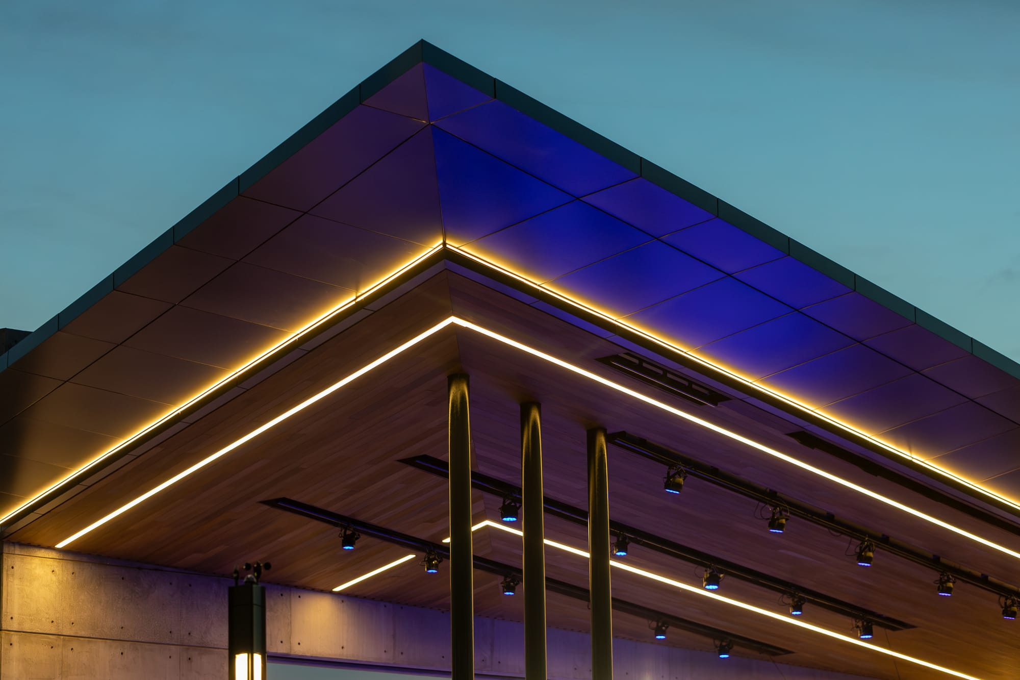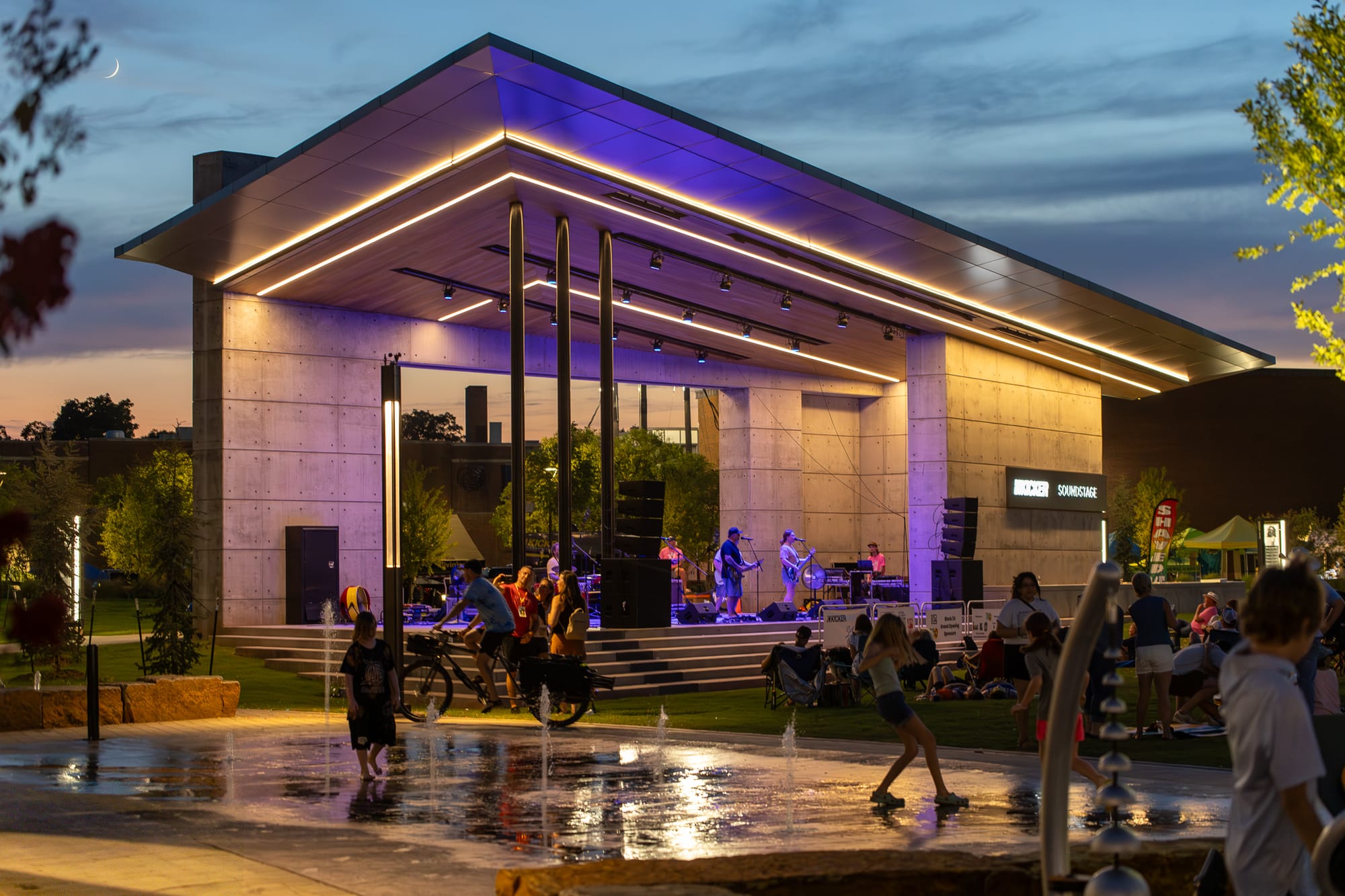 The space features the Kicker Soundstage and the Simmons Bank Pavilion, which was already hosting live music events before the dedication ceremony. The proximity to the Oklahoma State University Museum of Art across the street positions Block 34 to serve both residents and students.