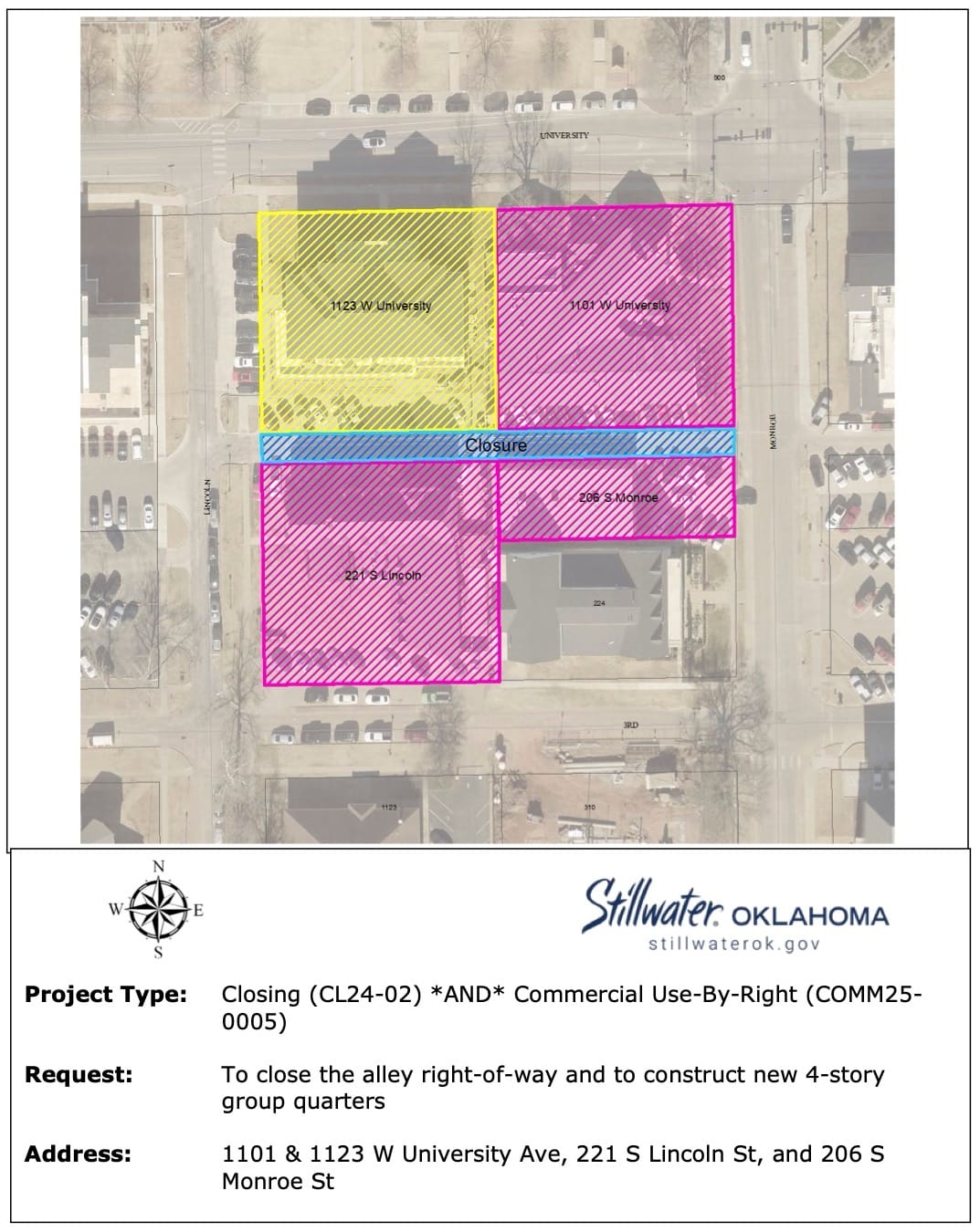 James Kuykendall petitioned City Council on behalf of the Gamma Delta Chapter of Sigma Chi Fraternity at Oklahoma State University to approve the alley closure. – Photo by Chris Peters, Google Street View