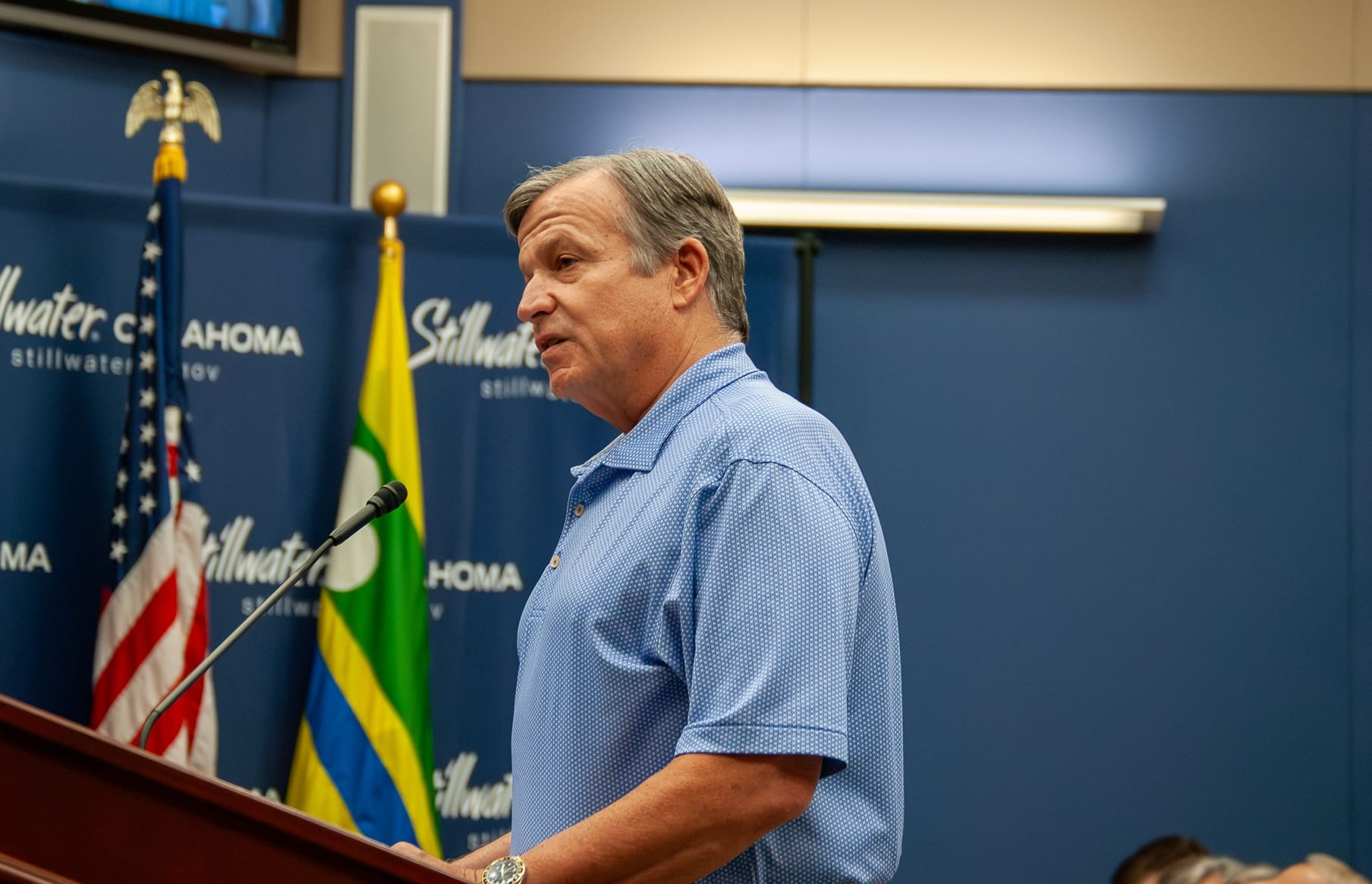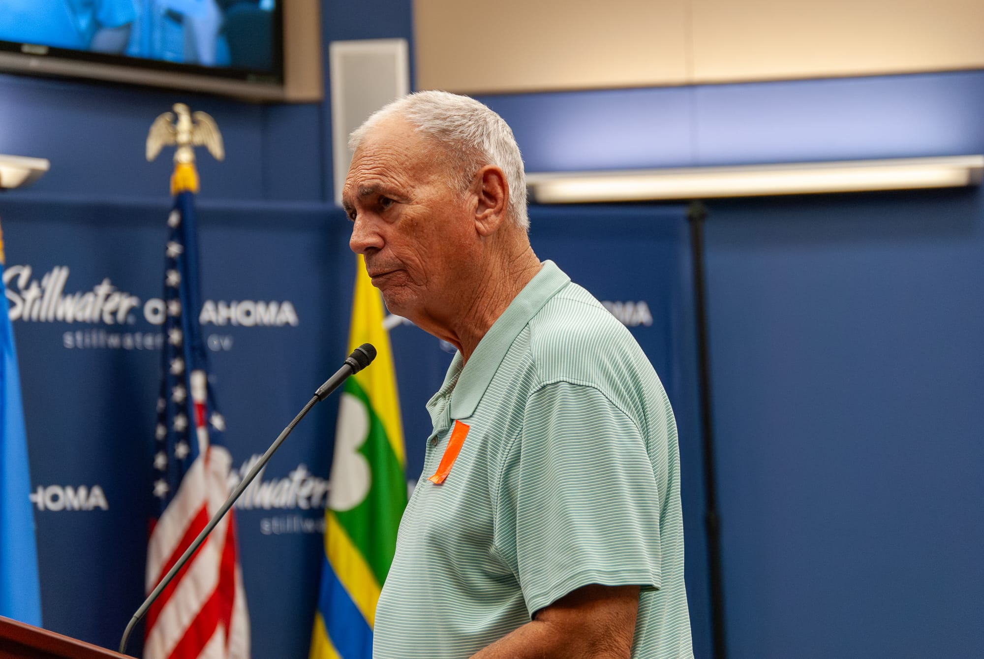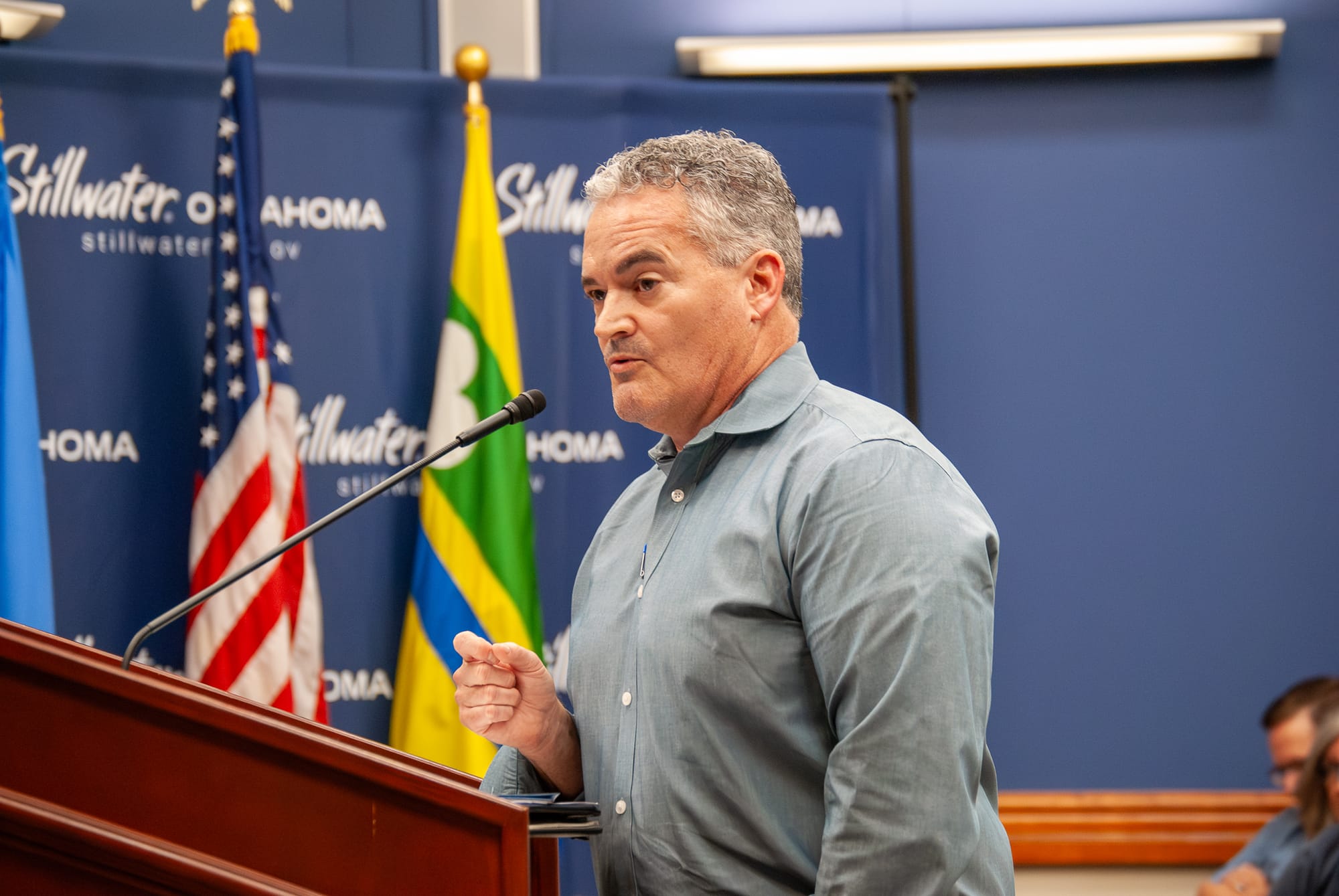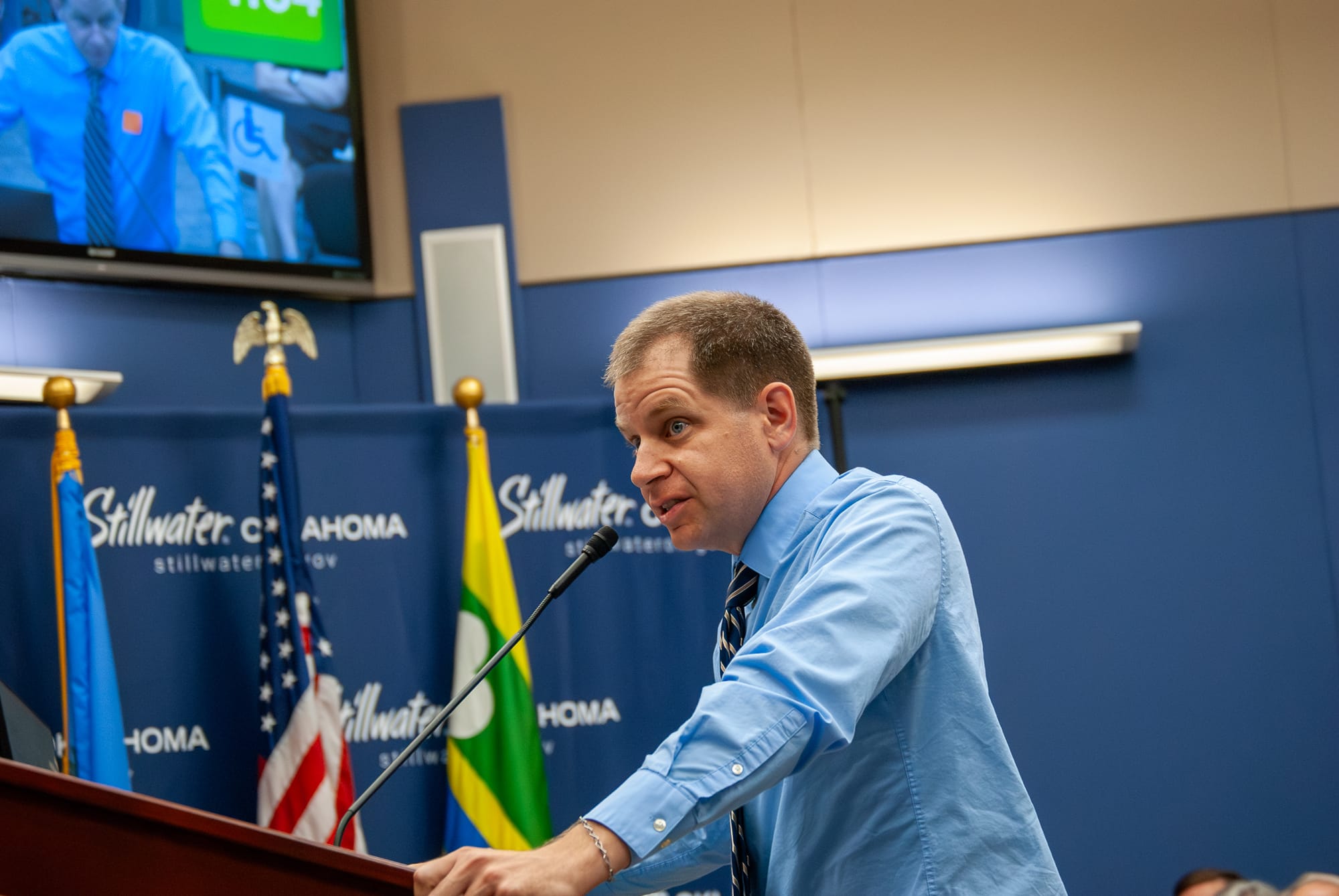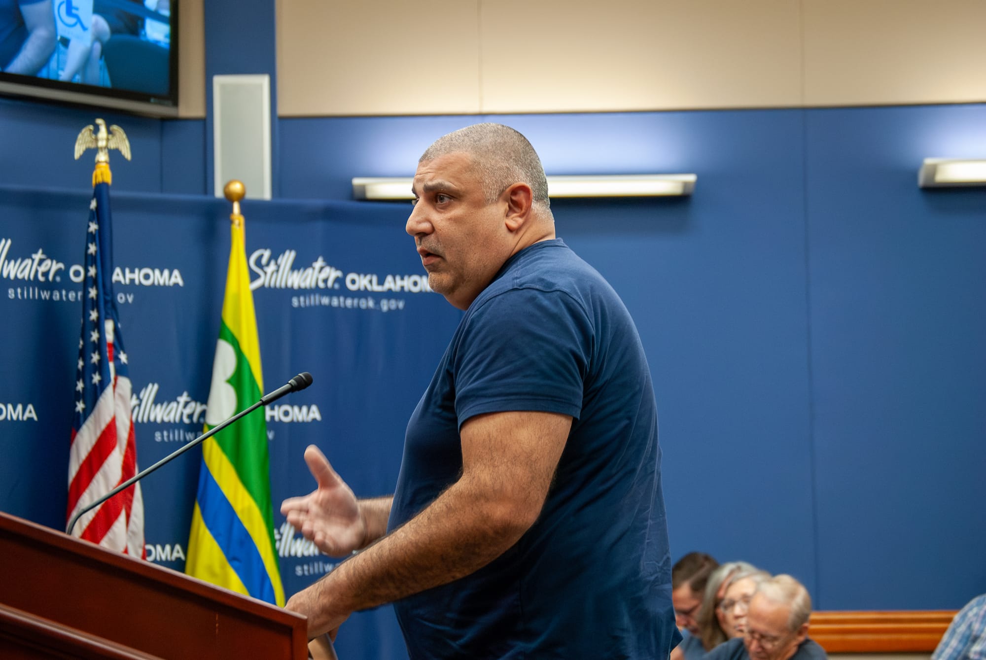Developer Safe Alusi pitches the plan to build a 42 residential housing unit near the intersection of McElroy and Jardot Road in Stillwater. – Photo by Chris Peters