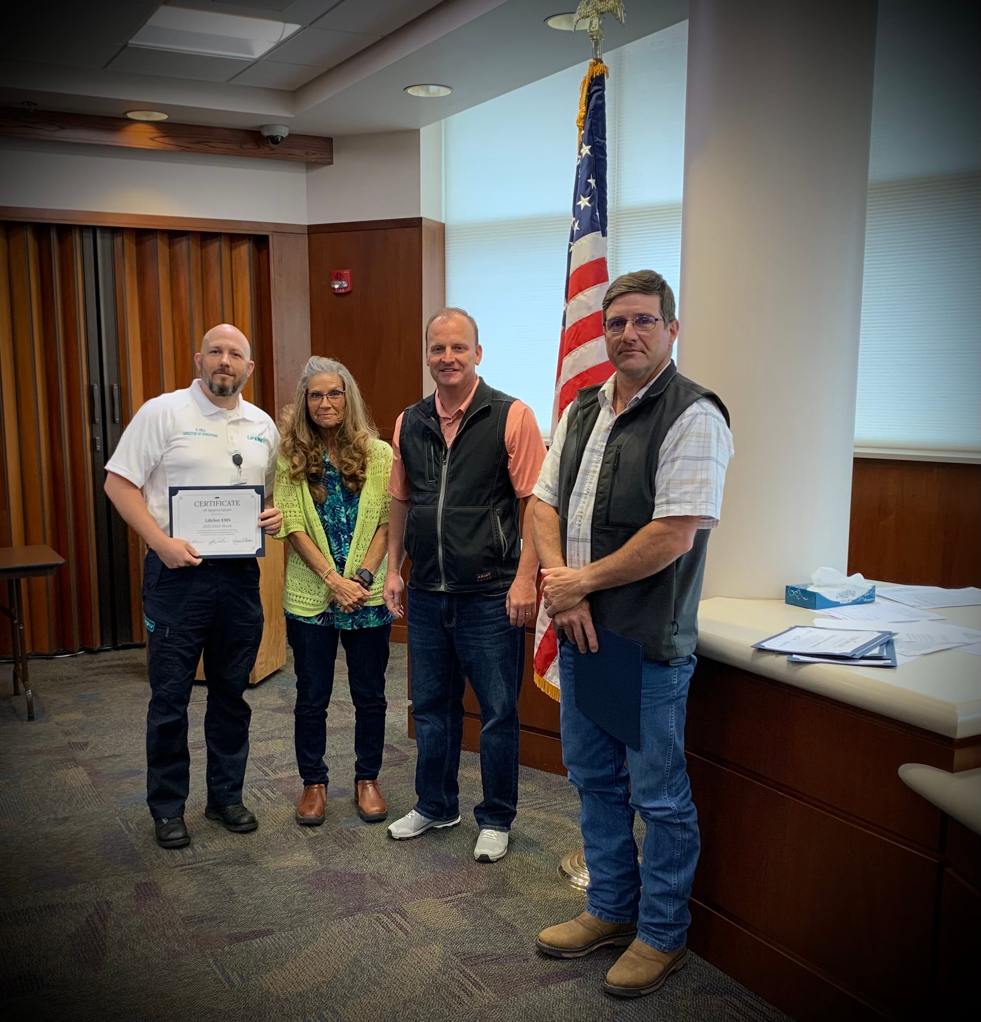 Commissioners presented certificates of appreciation to representatives from multiple emergency service agencies in attendance, including Stillwater Fire, Cushing Fire, Life Net EMS, and several volunteer fire departments from across the county.
