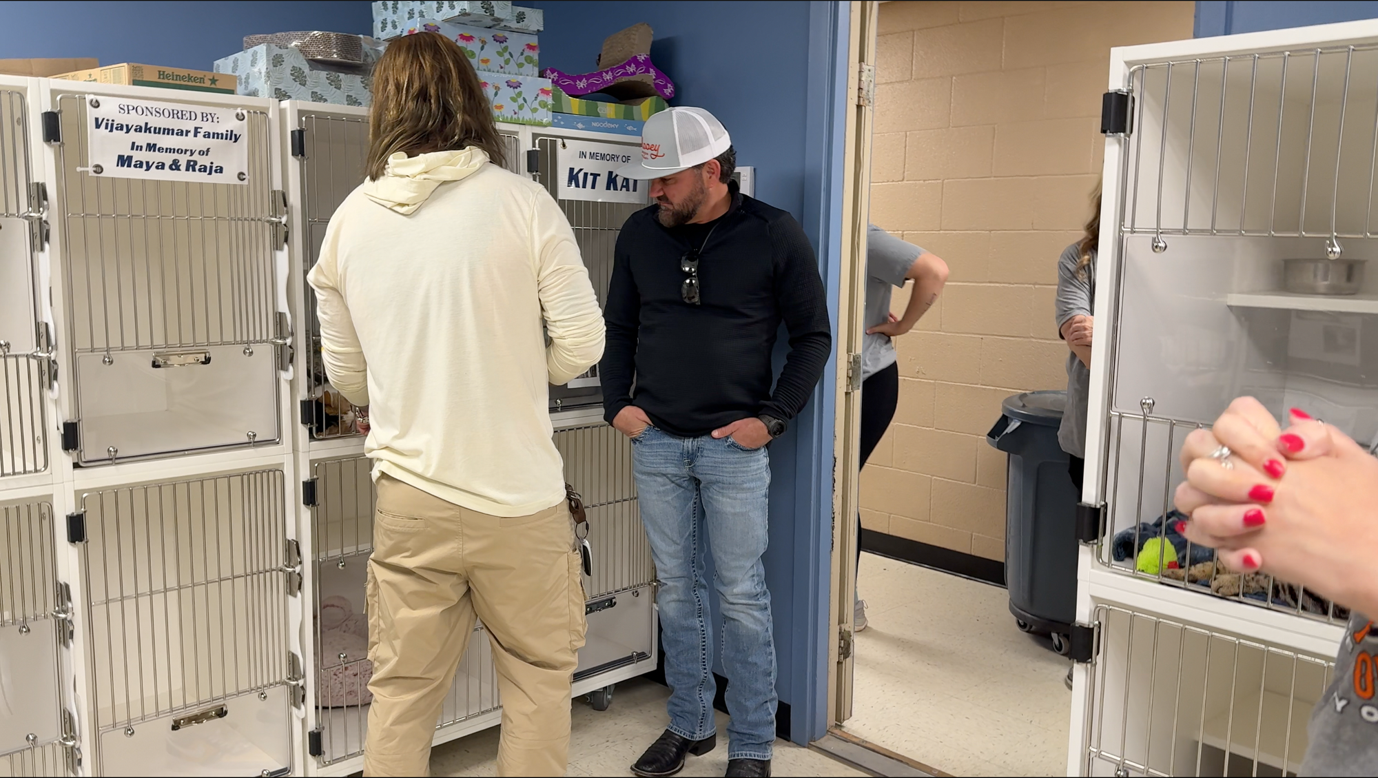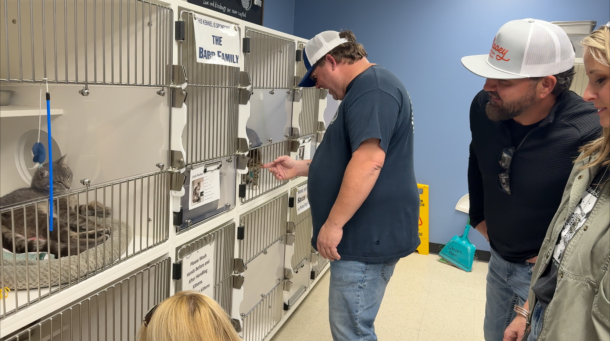 New cat condos were recently installed at the Humane Society thanks to a posthumous donation from long-time supporter Robert Maurizzi. Randy Ragsdale is the owner of two dogs, a boston terrier and a husky. Jeremy Plato just has a tom cat. Grady Cross has a pregnant boxer and Cody Canada said he has, "one labradoodle, one labra-dumbass and one cava-poo. We have one name Harold, who's just not all there."