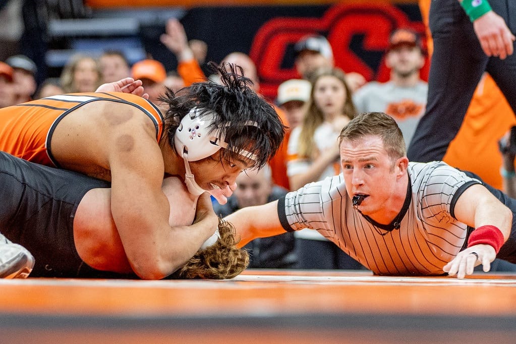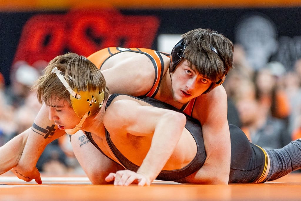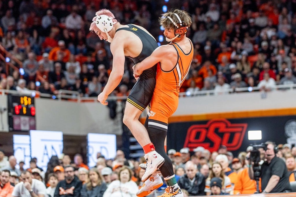 The Cowboys (15-1) started the day with a 5-2 decision from No. 7 Troy Spratley against No. 6 Dean Peterson of Iowa at 125. Shortly after, sixth-ranked freshman Jax Forrest gave OSU further separation, cruising to a 19-3 tech fall against two-time national finalist and ninth-ranked Drake Ayala.
