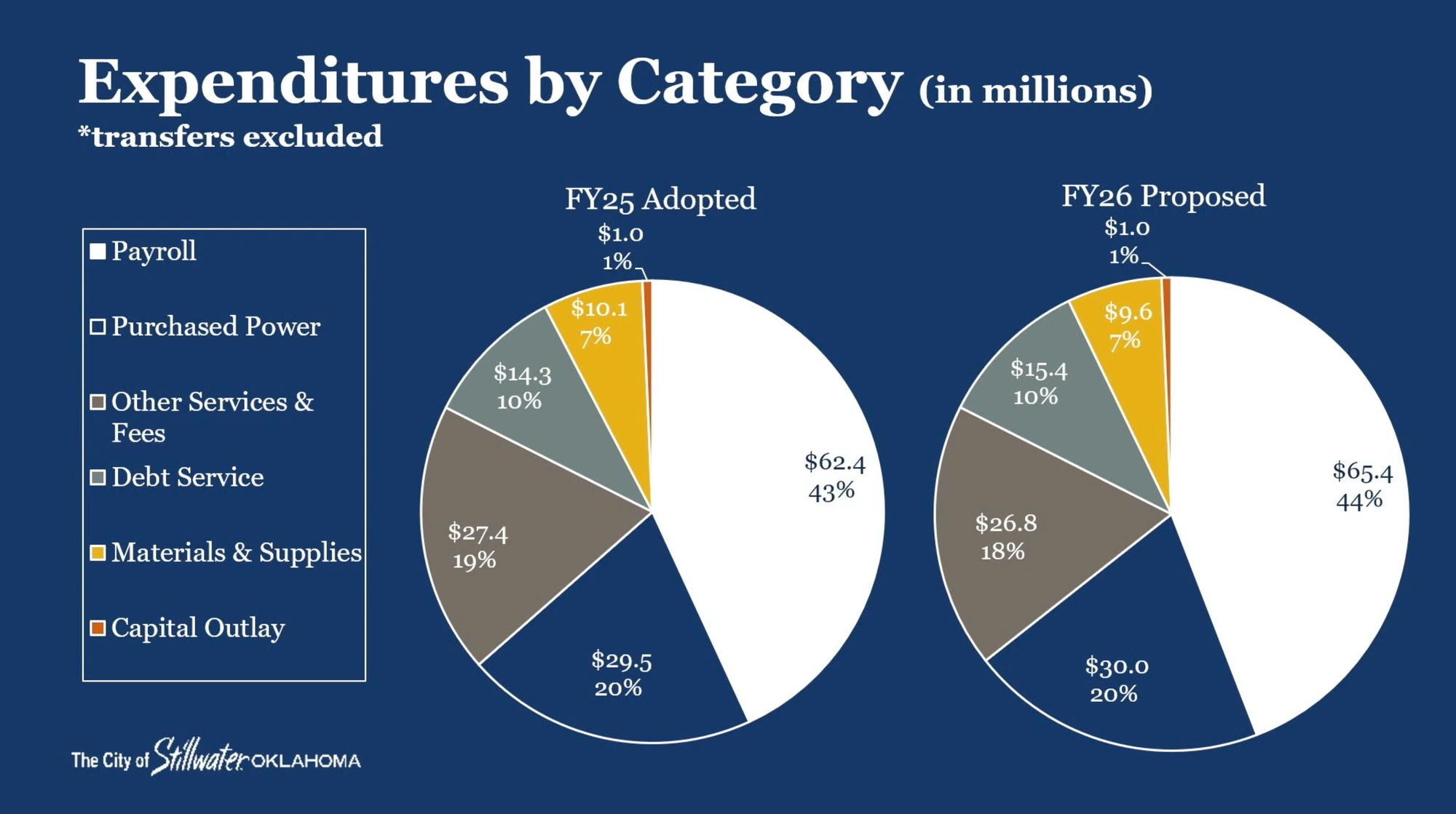 To address this funding gap, the city relies on an annual transfer from the Stillwater Utilities Authority (SUA). For fiscal year 2026, that transfer amount is $23.7 million, up 8.7% from the transfer in fiscal year 2025 of $21.8 million.