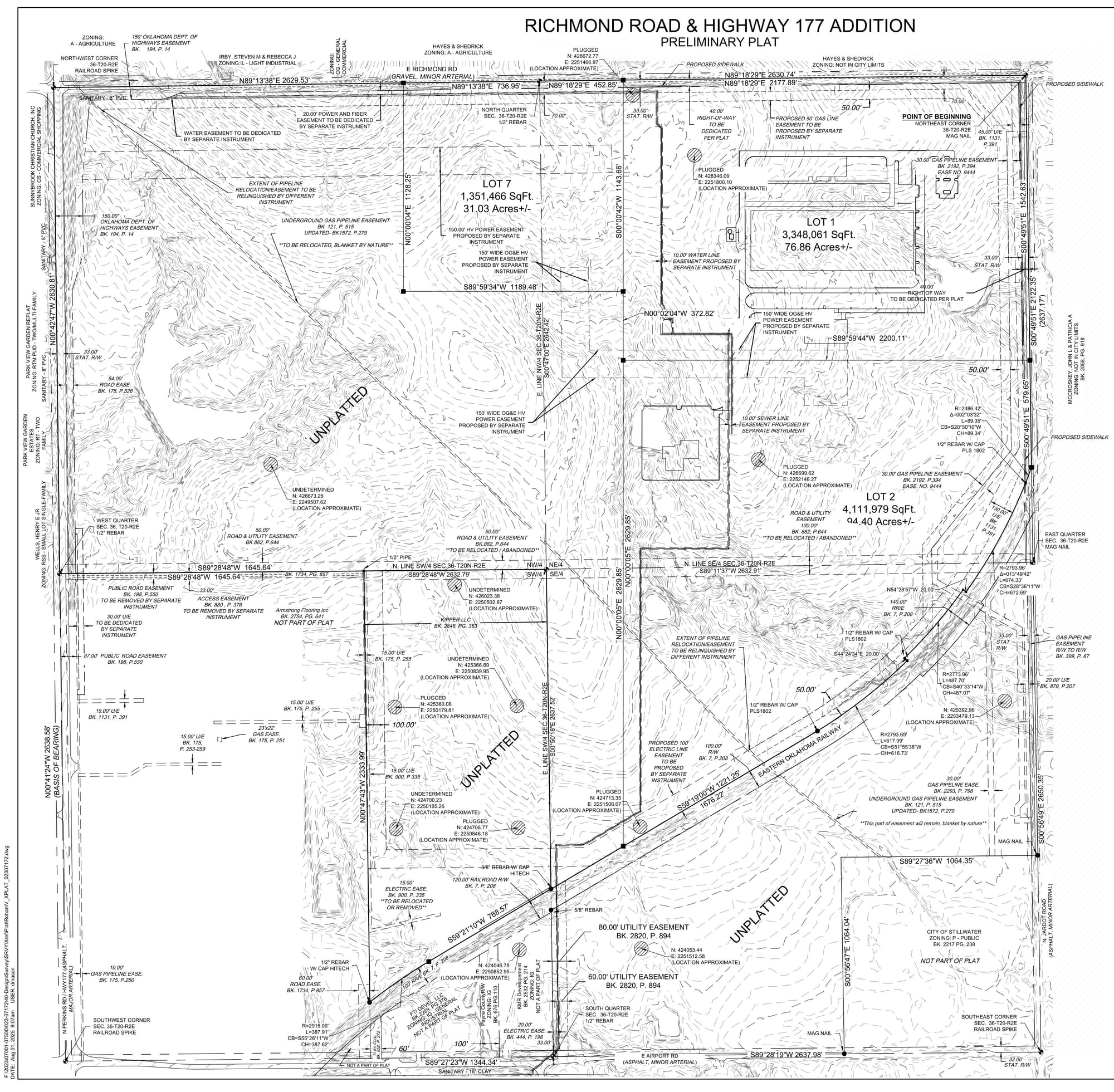 The Stillwater Planning Commission unanimously approved a preliminary plat for the Richmond Road and Highway 177 Addition on Tuesday, advancing the Google data center development project that includes three industrial lots totaling 202 acres.