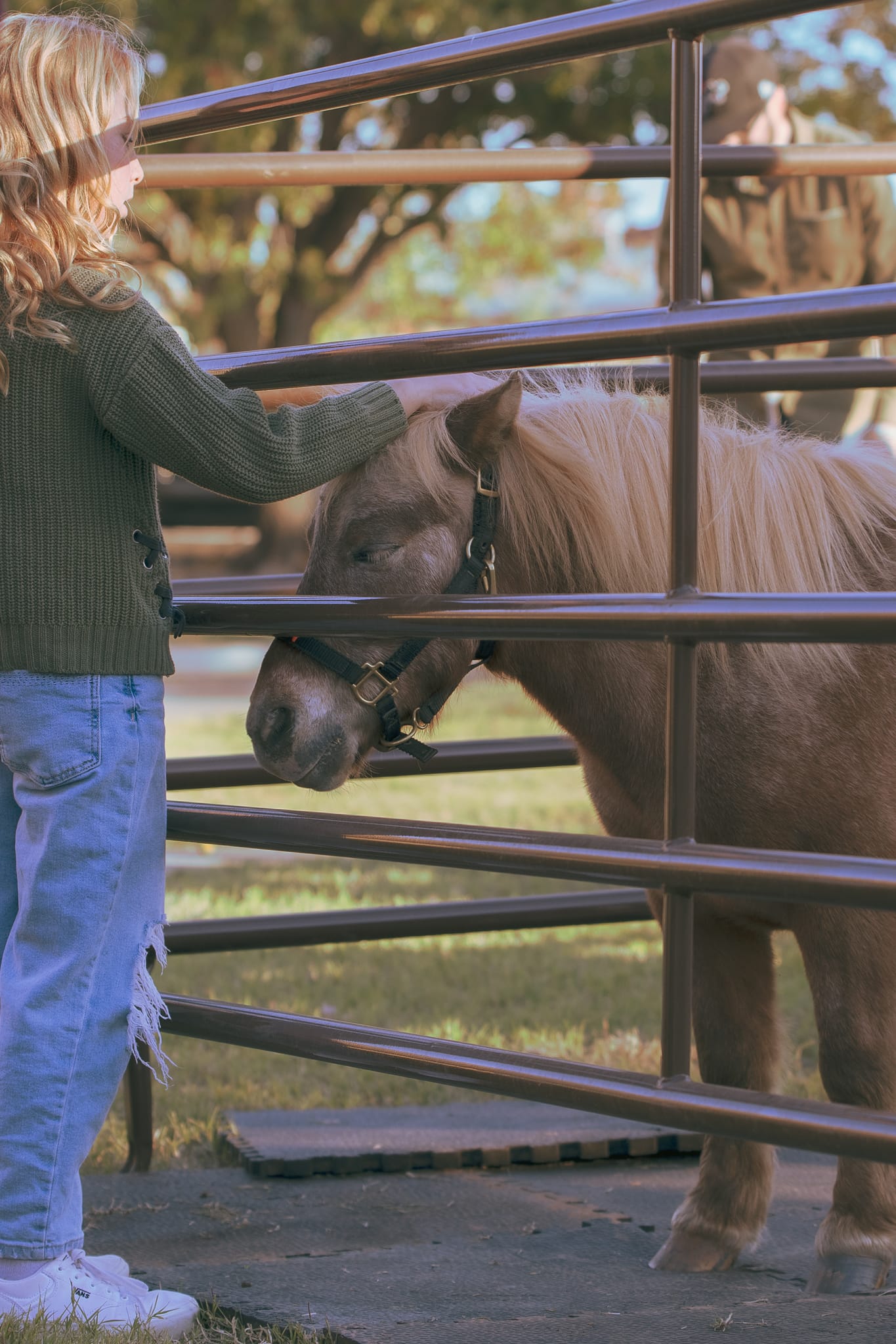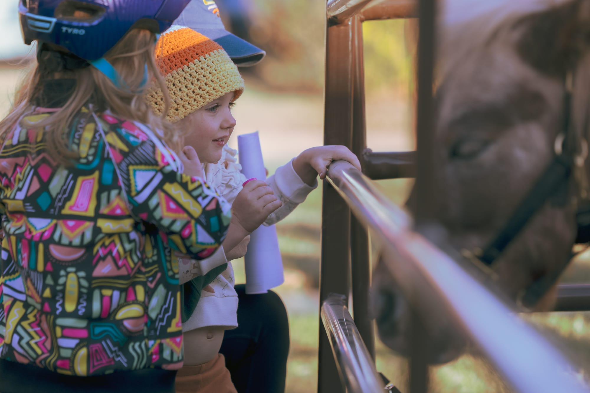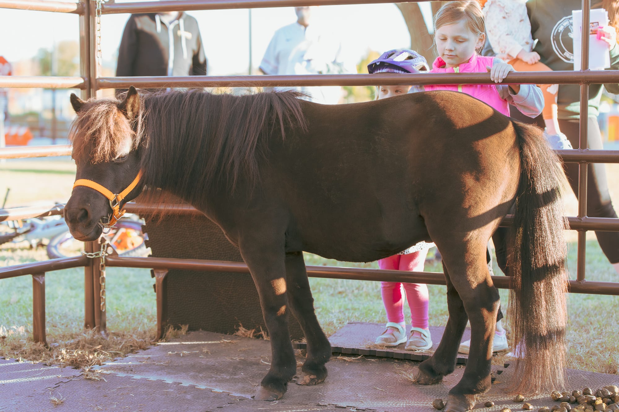 Miniature horses BB and Buddy from Turning Point Ranch greet young visitors at the Stillwater Harvest Festival. The therapy animals were featured as a nod to Li'l Sebastian, the beloved miniature horse from NBC's "Parks and Recreation," which inspired Class 34's festival theme. The petting zoo was one of several family-friendly activities at the fundraiser for Life Center Adult Day Services. – Photos by Chris Peters