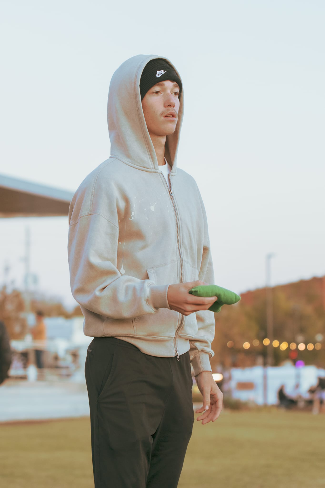 "The Beanie Boys" dominated the Harvest Festival cornhole tournament on Block 34. Brothers Kole Melvin, 12, and Kamden Melvin, 16, went undefeated against adult competitors to win the championship. In the final round, Kamden perfectly threw all four bean bags to score four points, and eventually winning the match 21-12. – Photo by Chris Peters