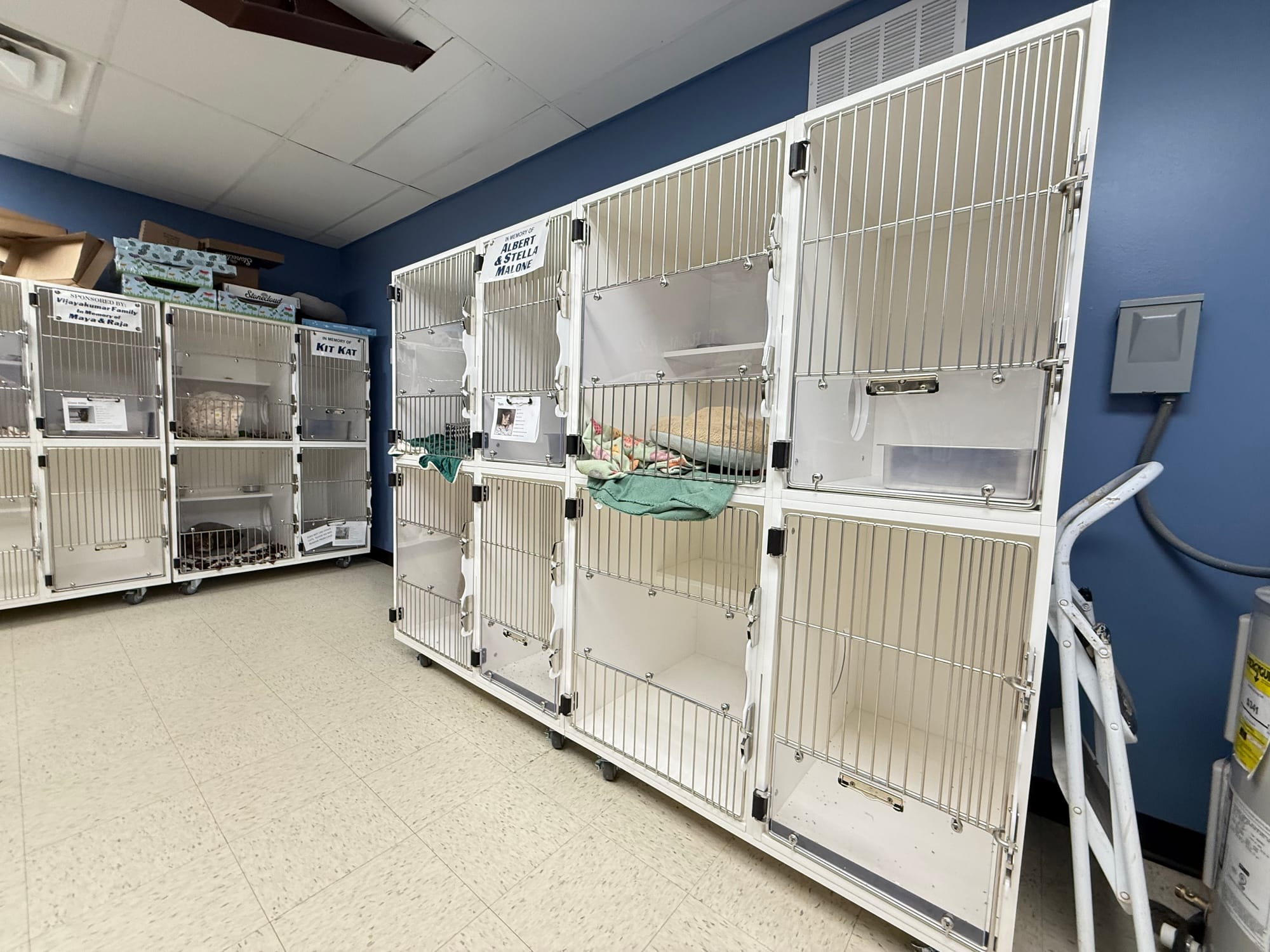 Thanks to a posthumous donation from long-time supporter Robert Maurizzi, new cat condos were recently installed to replace aging units. Tom and Coco Kitty can be adopted for $30. – Photos by Chris Peters