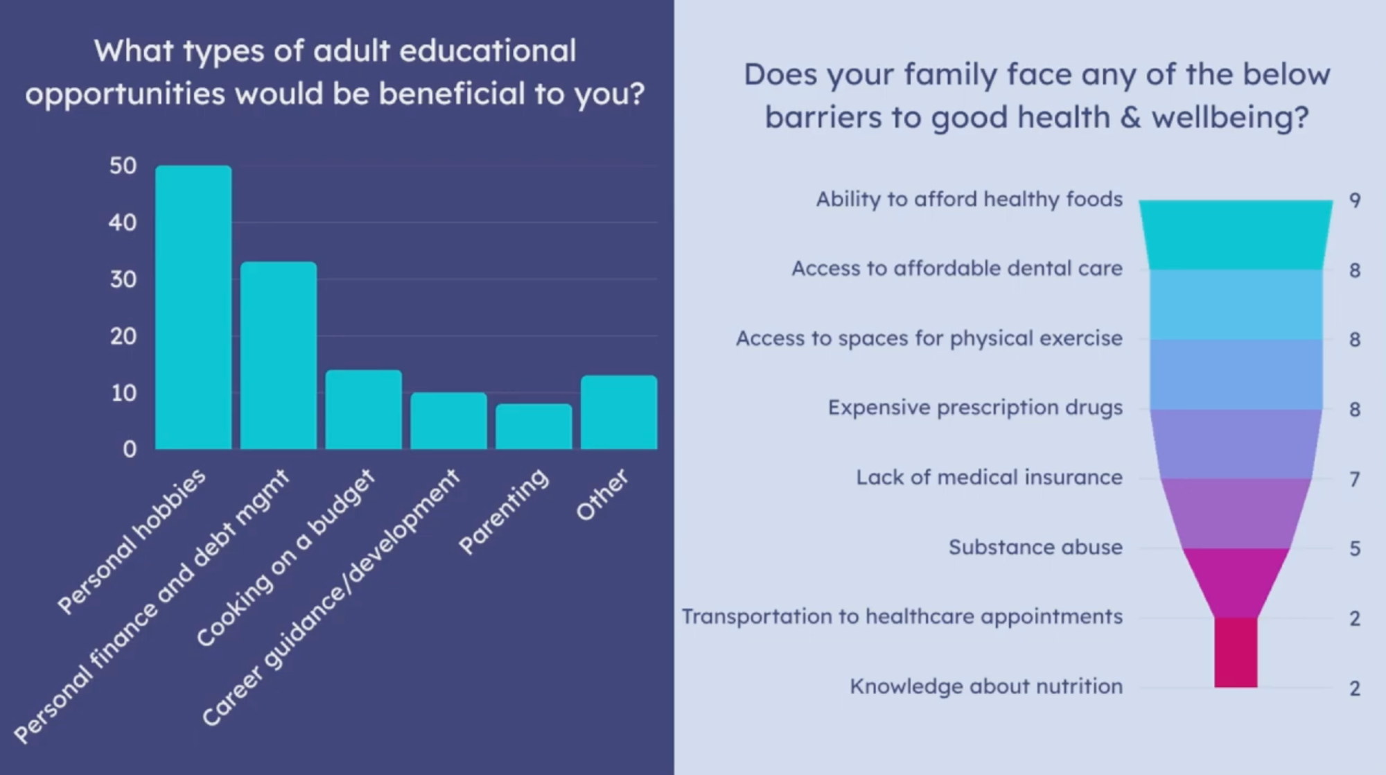 Residents also identified barriers to health including inability to afford healthy foods, dental care access, expensive prescription drugs and lack of medical insurance.