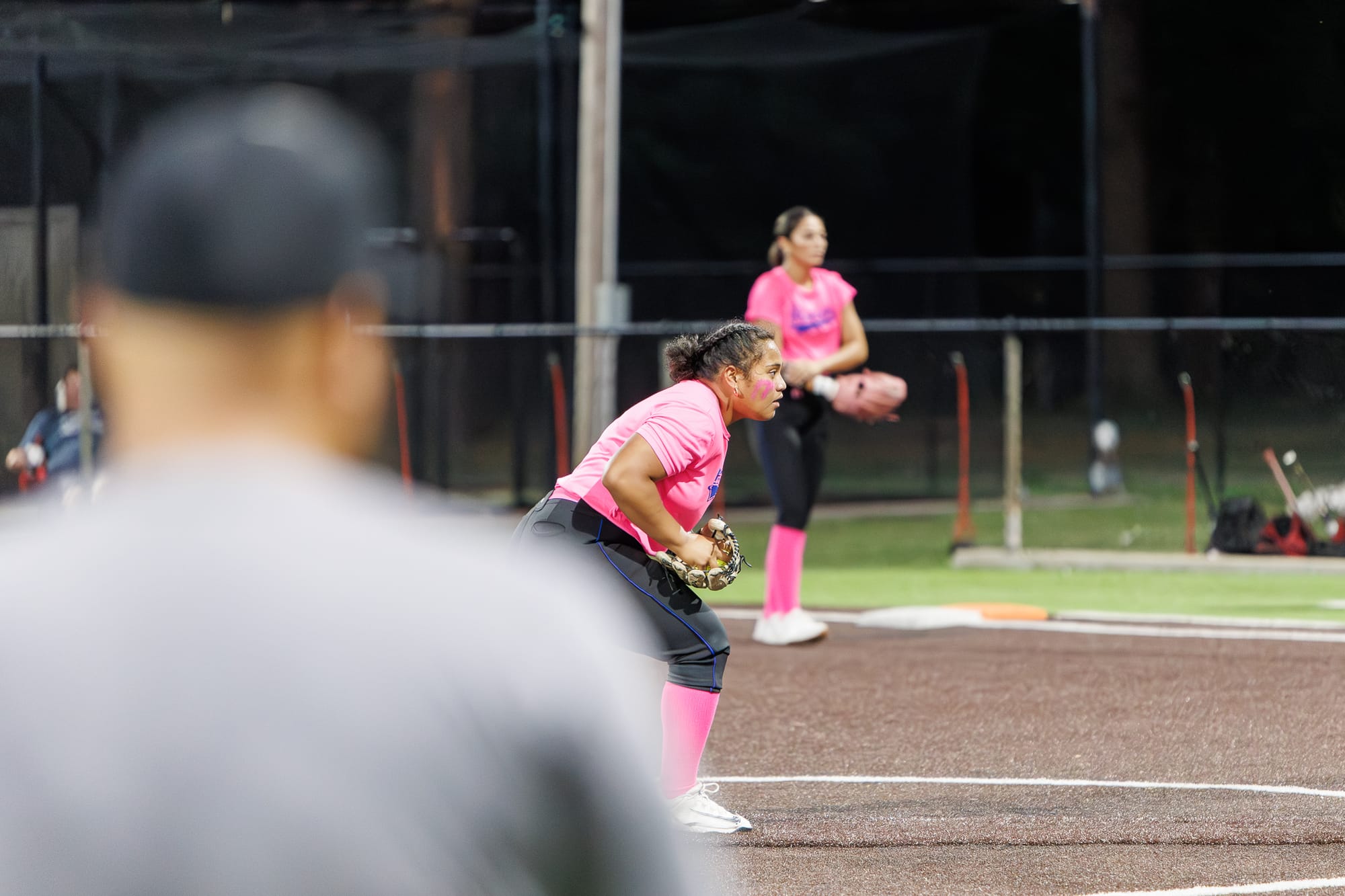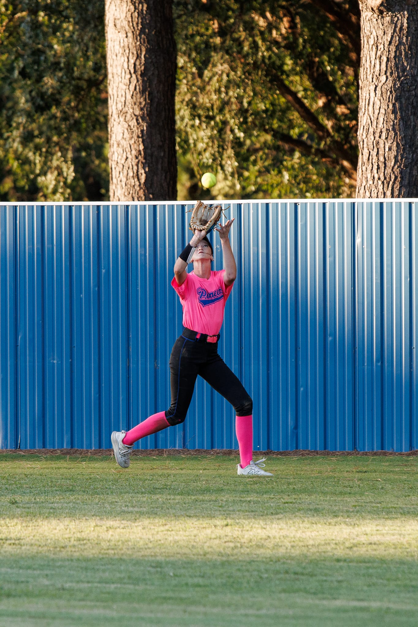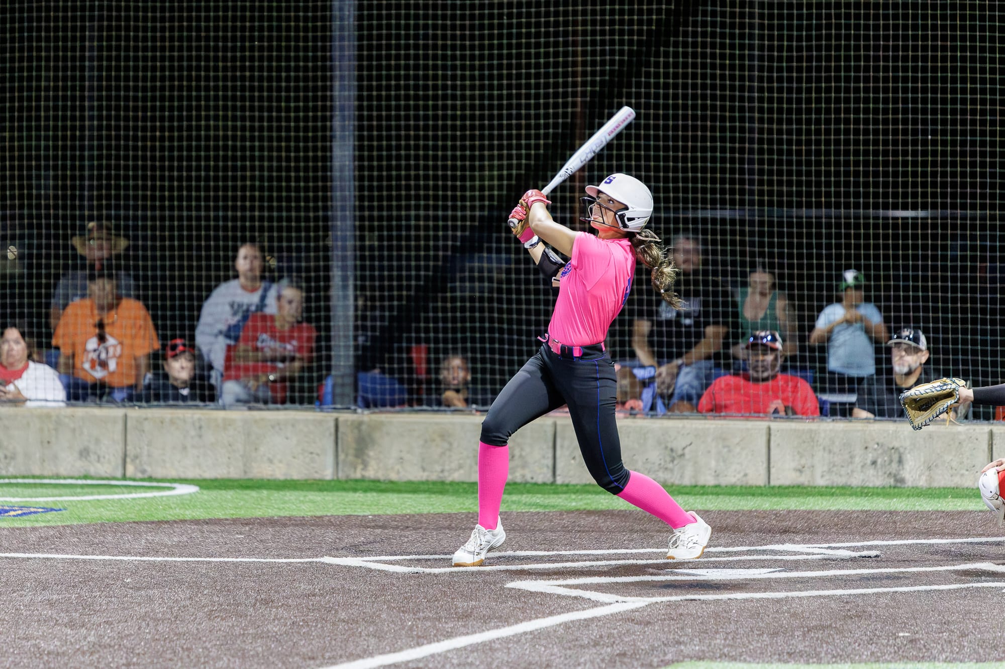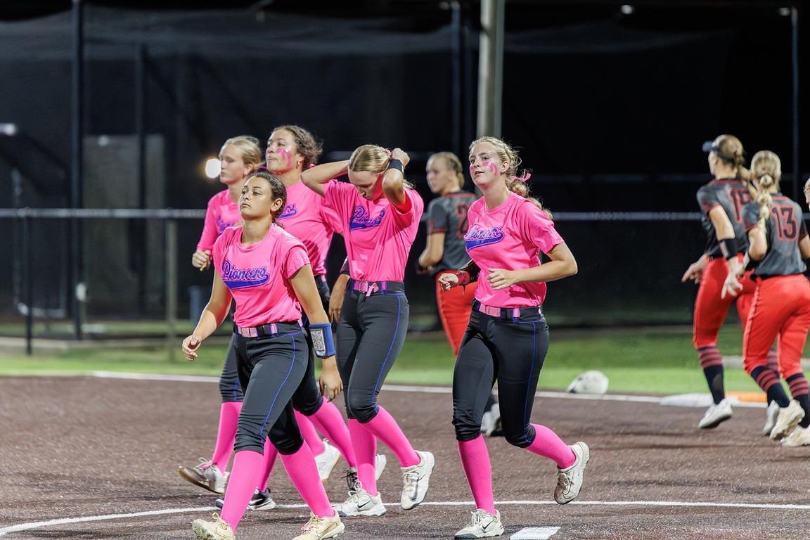 Stillwater honored breast cancer awareness month by wearing special hot pink uniforms. The team showed early promise when Callé Cox (24) singled in the first inning and swiped second base, but the Pioneers couldn’t bring her around to score.