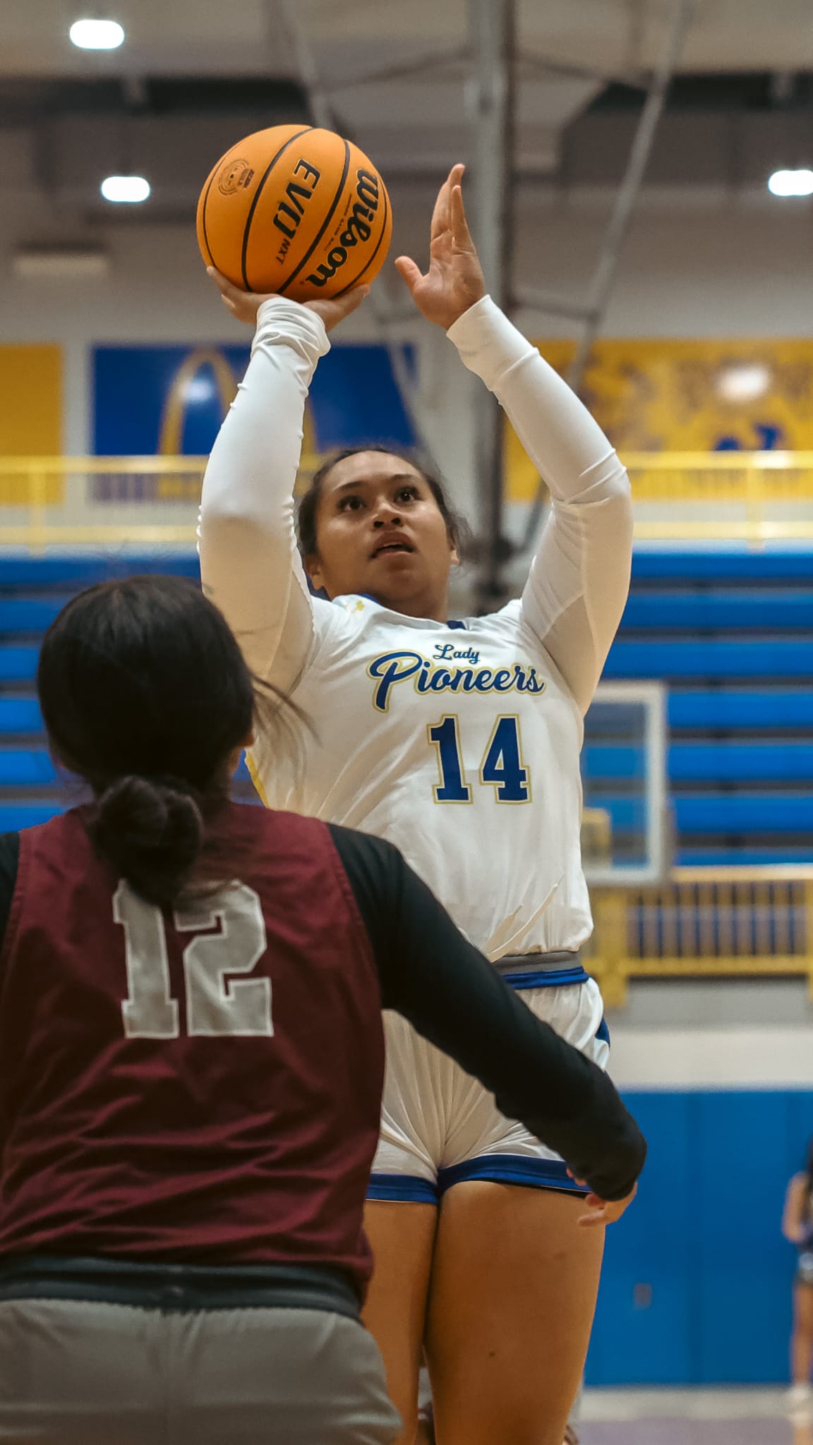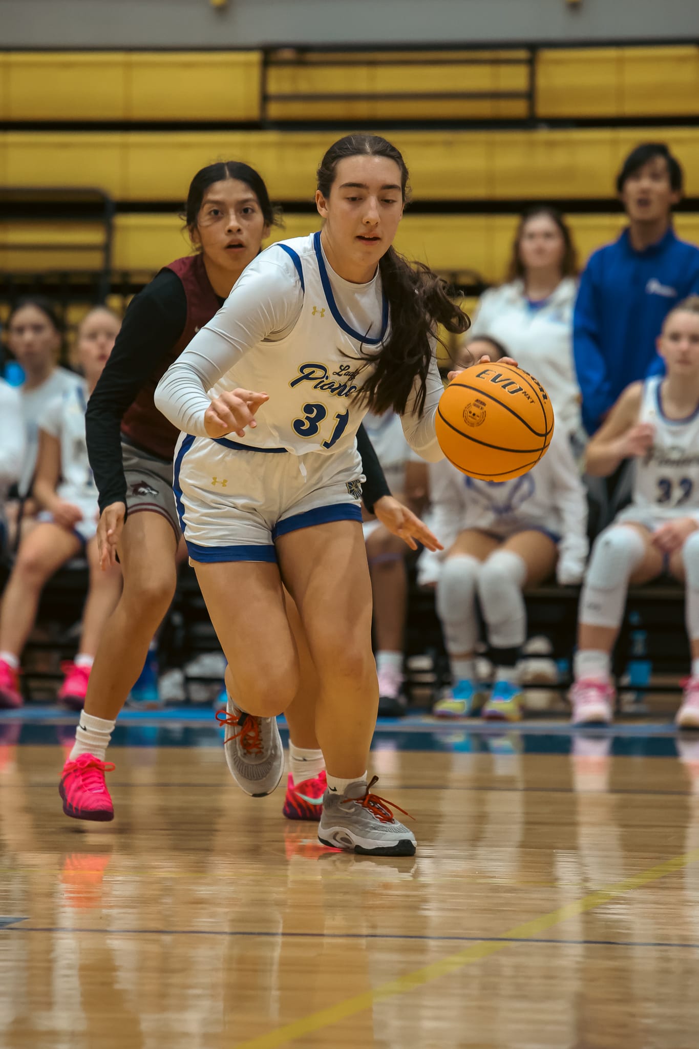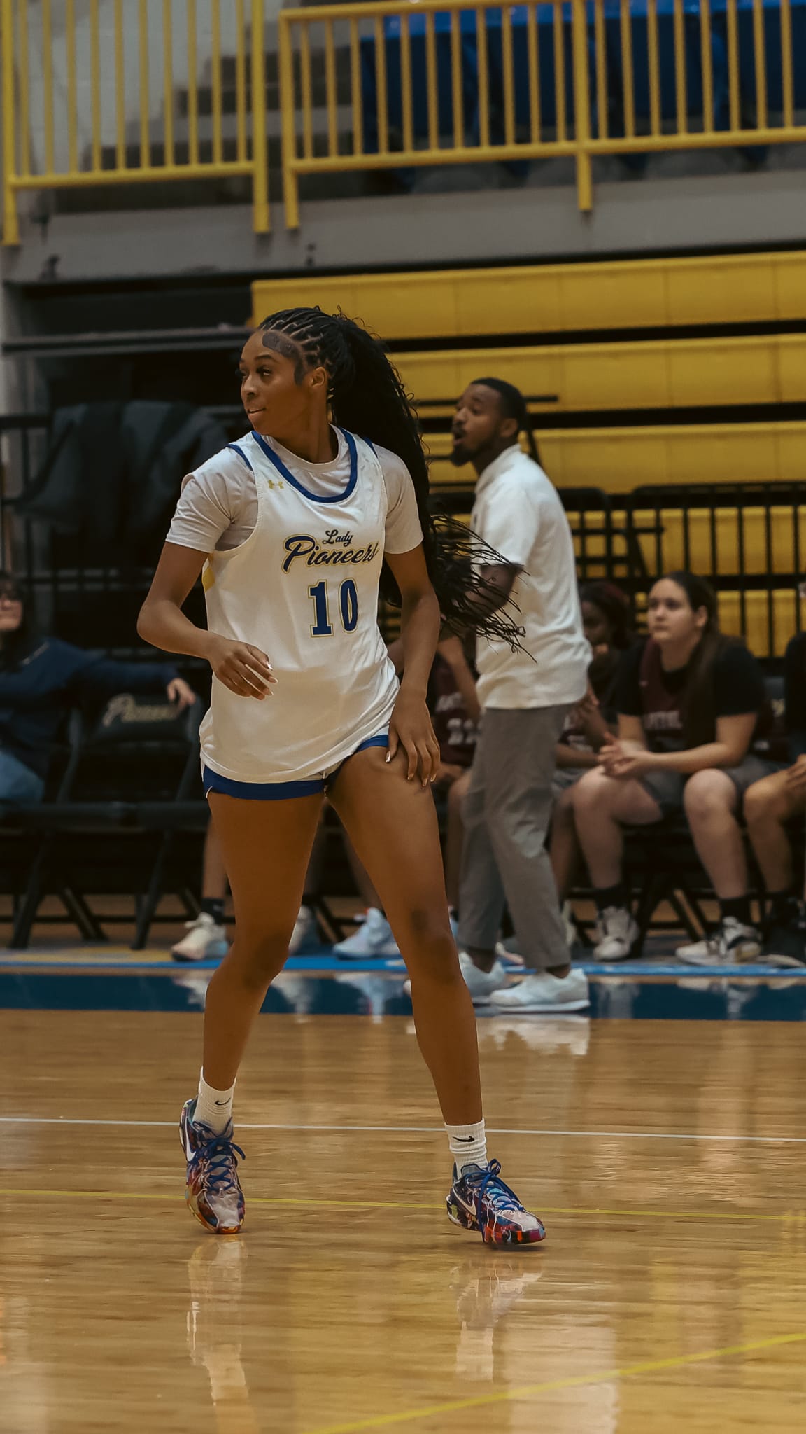 Freshman Amya Bell (2) added seven points on perfect 3-of-3 shooting from the field, including a three-pointer. Junior Ashtyn Yates (21) scored six points on 3-of-5 shooting, while sophomore Sai Kolone (14) also tallied six points despite a challenging shooting night.