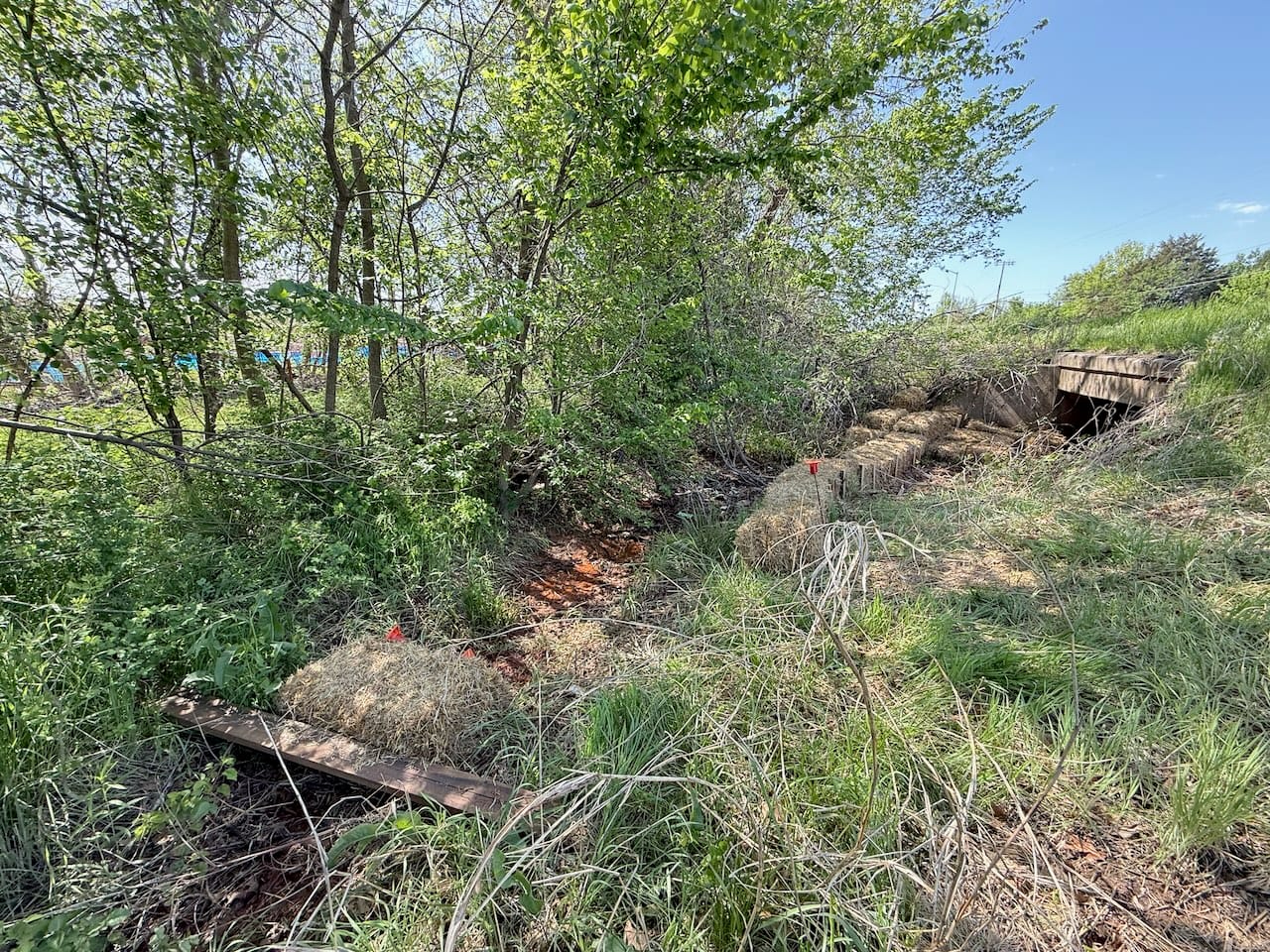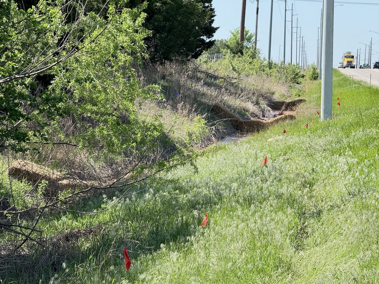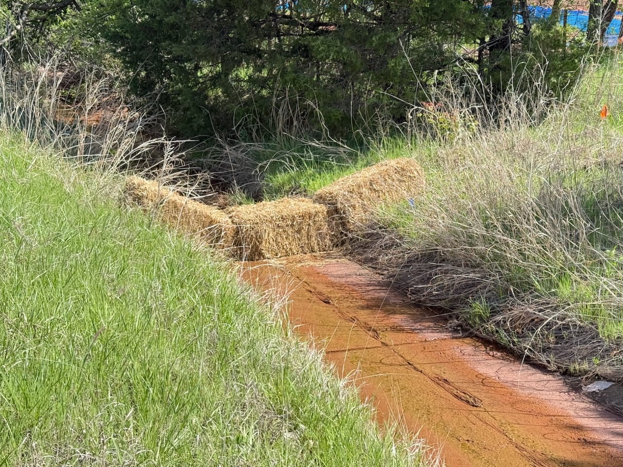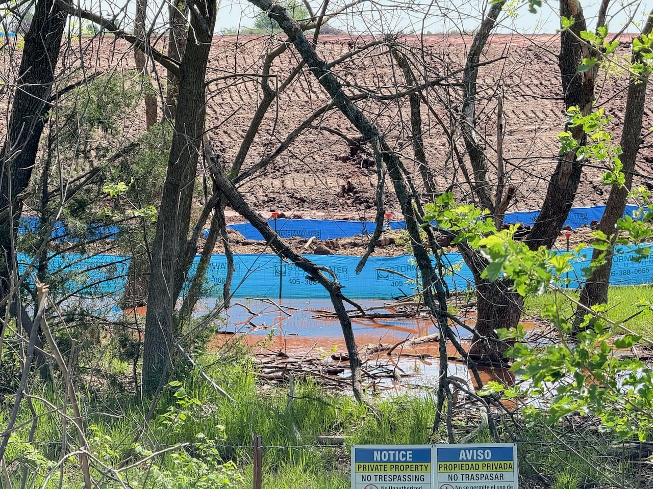 Red silt and dirt from Google's data center construction site contaminated the Park View Estates pond during spring storms, killing fish and aquatic life. The homeowners association sued the construction companies in August for negligence and failure to prevent runoff damage. – Photos taken April 22, 2025 by Chris Peters