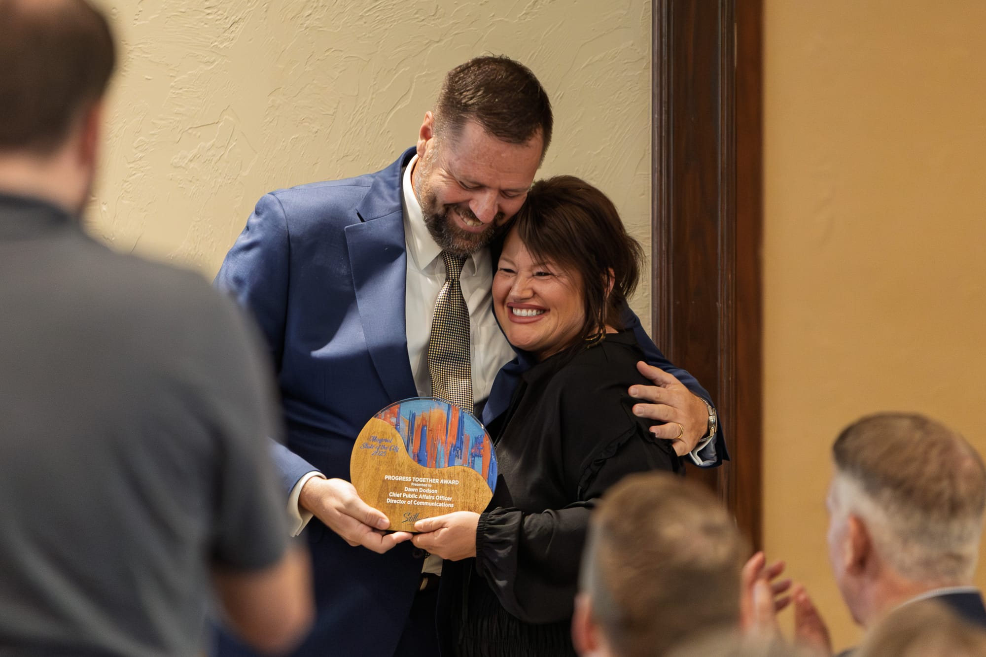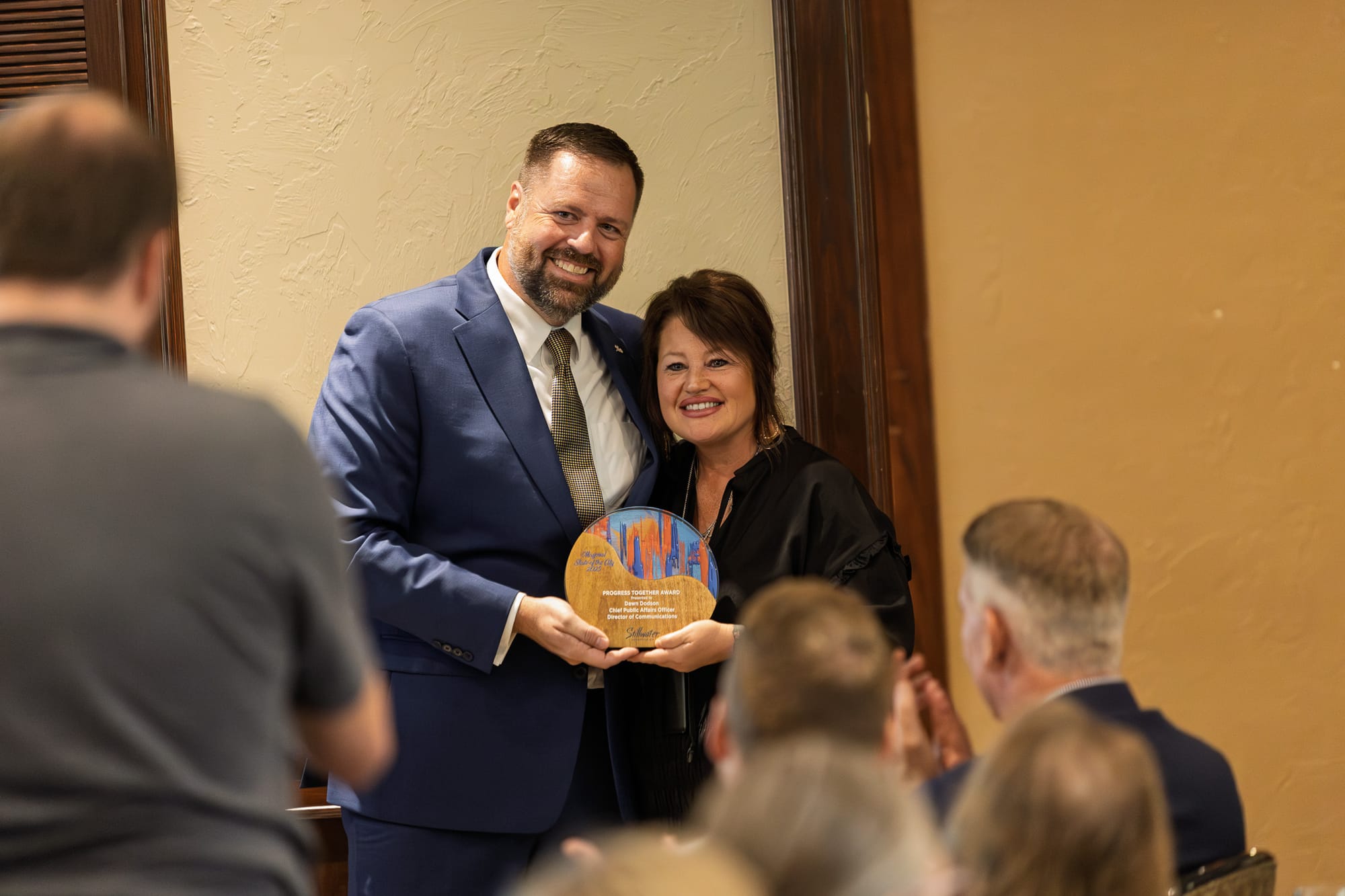 Mayor Will Joyce surprised City of Stillwater’s Chief Public Affairs Officer Dawn Dodson with a Progress Together award at the Mayoral State of the City event. Dodson’s innovative approach is credited with enhancing the annual event’s appeal. – Photos by Chris Peters