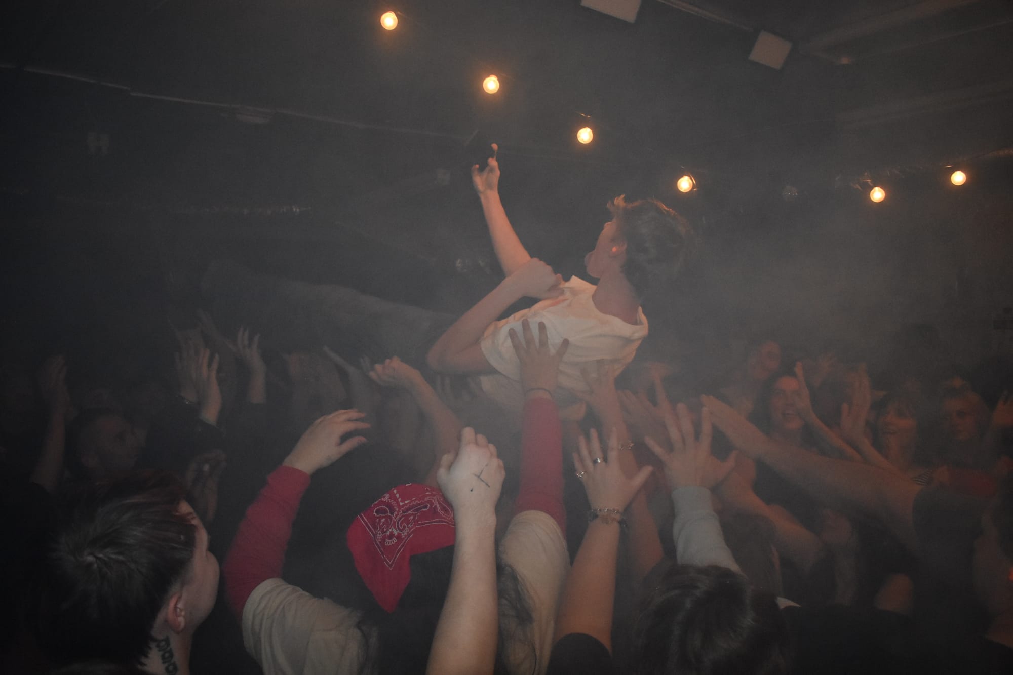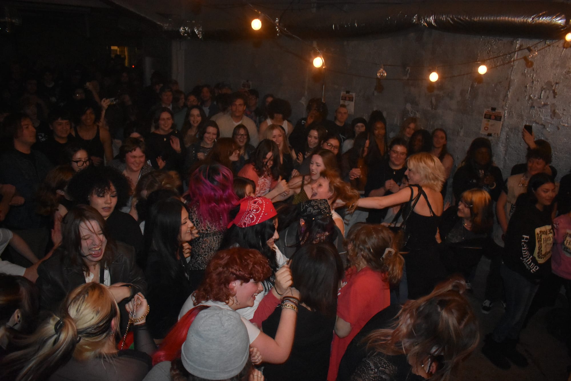 Peoria, the first official band to play under the Velvet Fudge name, performed with fierce energy, ending their set by pulling out a phone and taking a selfie with the crowd. Die Mart came all the way from Austin, Texas. Their high-octane set got the room moving, culminating in an all-female mosh pit during their punk-rock cover of "Girls Just Wanna Have Fun."