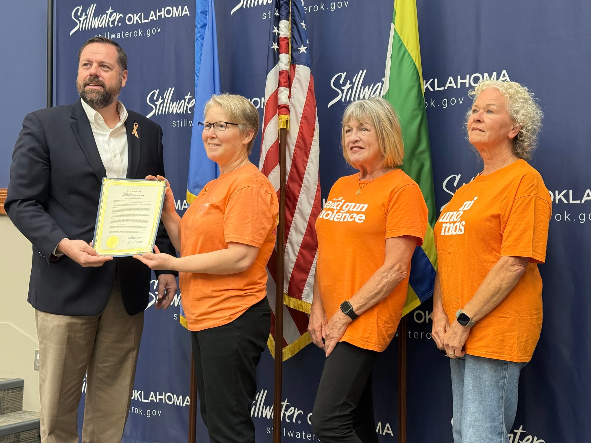 The council proclaimed June 6, 2025, as National Gun Violence Awareness Day in Stillwater, noting that in an average year, 802 Oklahomans die by guns and 1,196 are wounded, making Oklahoma the 13th highest rate of gun deaths in the U.S.