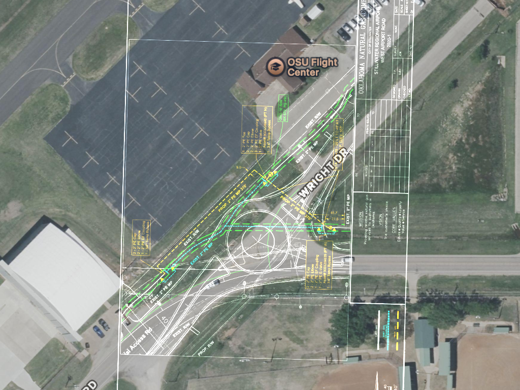 The design plans for the airport access project calls for a roundabout to replace a three-way intersection. – Photos by Chris Peters