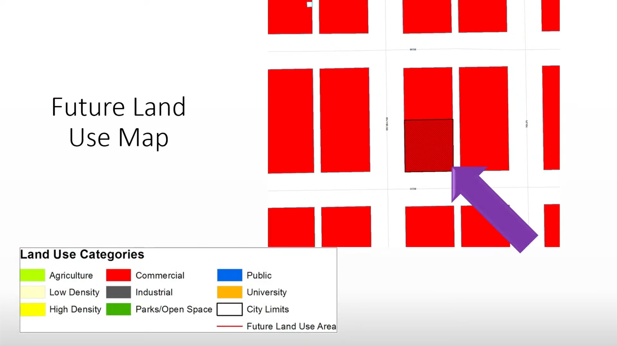 The city's comprehensive plan designates the area for commercial use, which aligns with the requested zoning change. Commercial Business zoning already exists directly east of the properties.