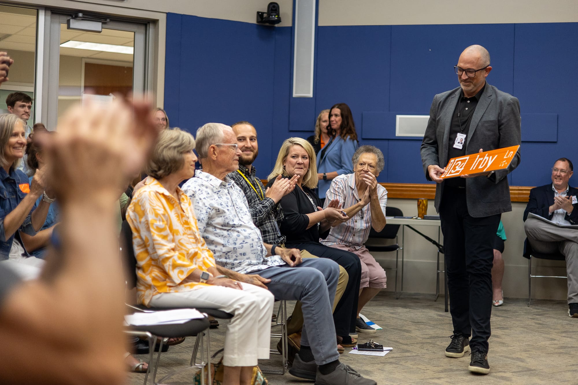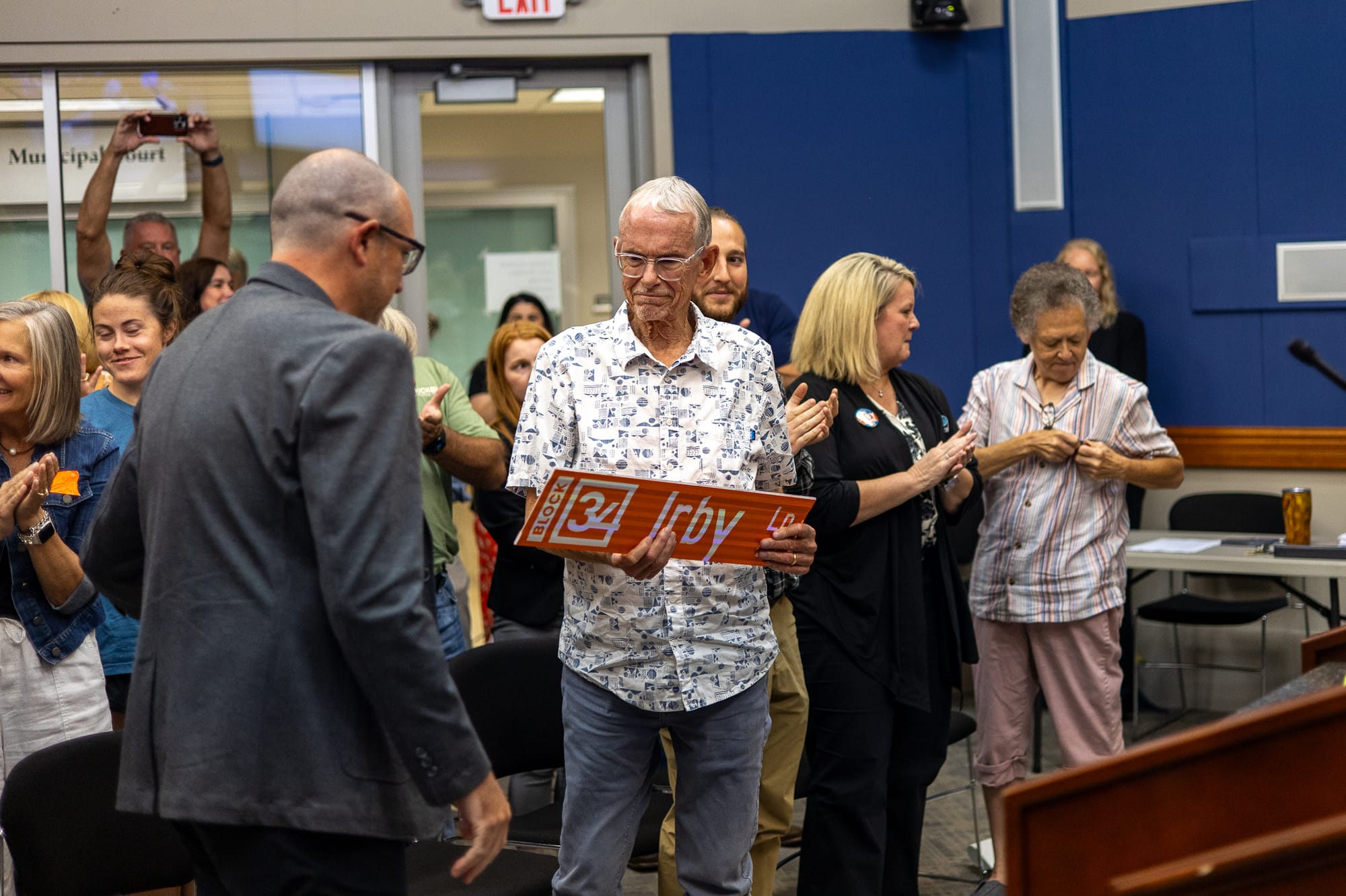 Steve Irby expressed gratitude for the unexpected honor and praised the collaborative effort that made Block 34 possible.
