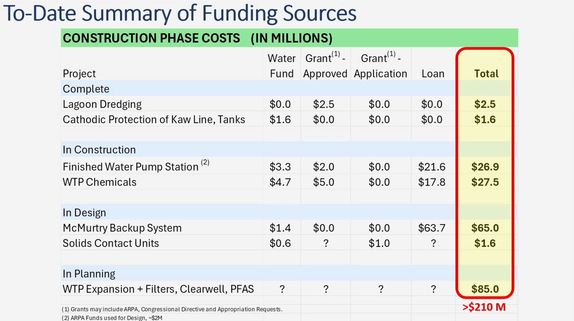 The city is pursuing grants and loans to fund these extensive improvements. So far, about $9.5 million in grants has been approved for different construction projects, with additional applications pending.