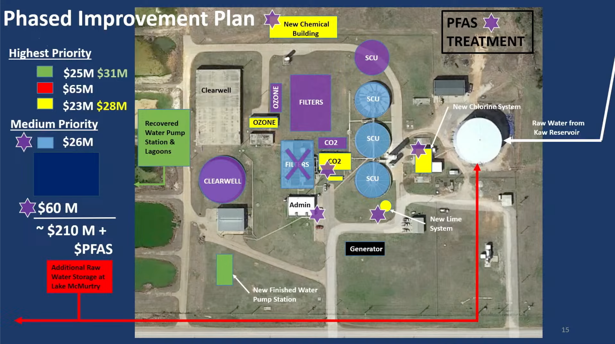 The plan includes three high-priority projects: a new finished water pump station, chemical systems upgrades, and a secondary water source pipeline to Lake McMurtry.
