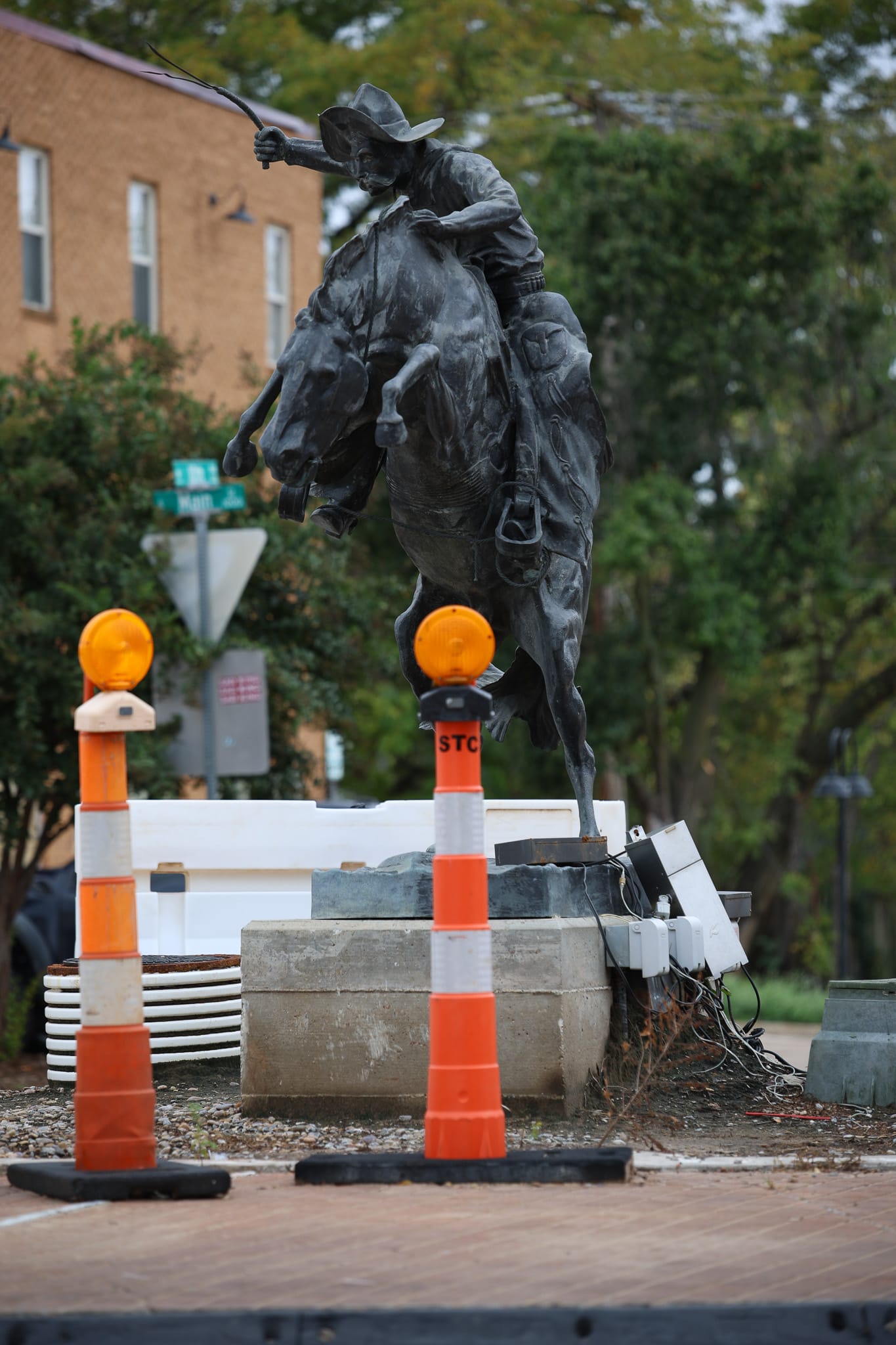 The roundabout at 10th Avenue and Main Street, which features a bronco buster statue, was installed in 2015 for $40,000. The structure has been struck by drivers multiple times over the years, including at least twice in 2021, twice in 2023 and most recently in February when a driver demolished the decorative walls, damaged the electrical system and water feature.
