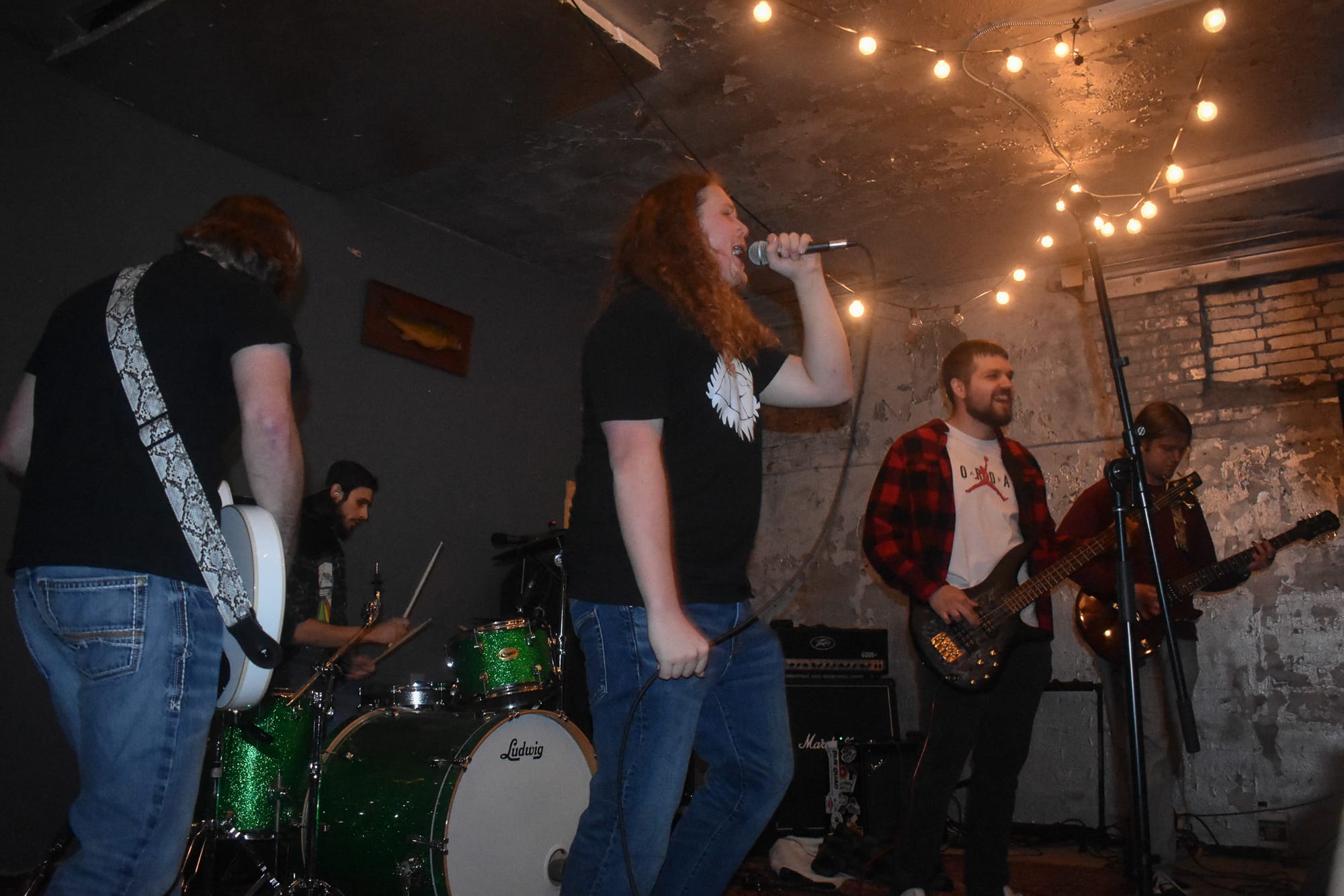 The last band of the night, Peoria, everyone had been waiting for. Walking through the crowd between sets I could hear people murmuring, “Peoria, they’re gonna cook tonight!” They came in with a melodic alternative rock sound, excellent band cohesion and interaction with the audience by lead singer Logan. When they started their second song, “Man in The Box” by Alice in Chains, I was completely sold on their vibe. Their guitarist broke a string during the song, kept going, and had the new string on his guitar quickly enough to start the next song without a huge lull in the show.
