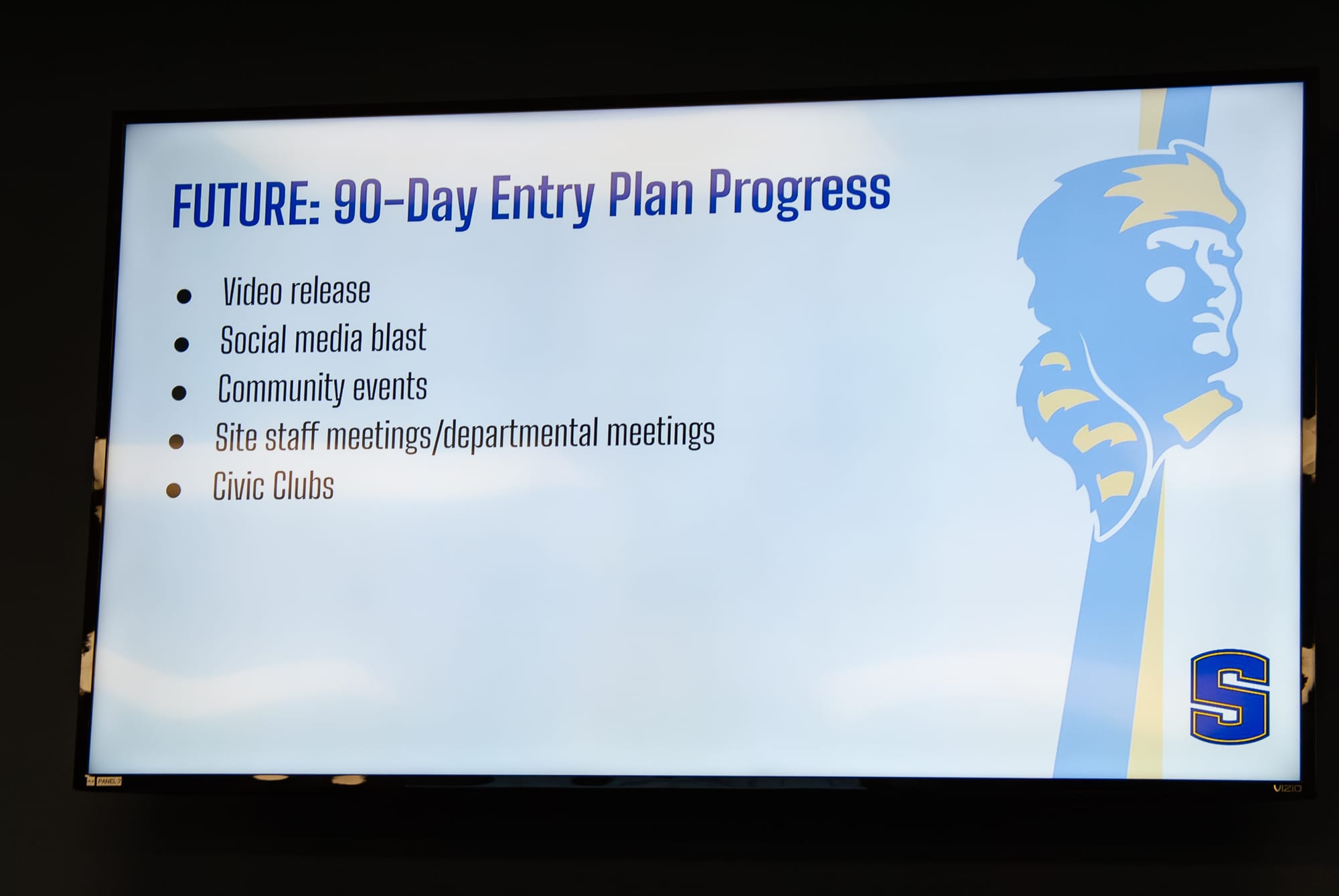 The superintendent said he is prioritizing immediate issues that need attention while identifying longer-term challenges that will require more planning and data gathering. He has attended chamber events and has meetings scheduled with various Stillwater partners and civic organizations.
