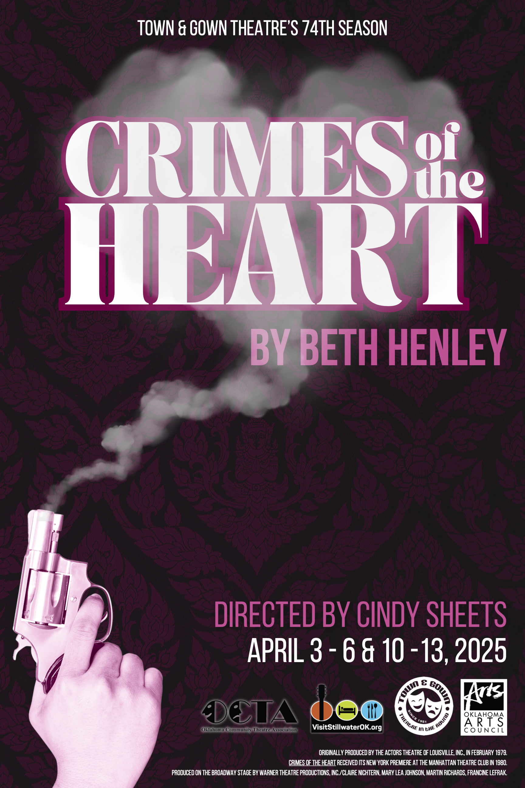 Town & Gown Theatre in Stillwater presents Beth Henley's "Crimes of the Heart" as the fourth production of its 74th season, bringing the Pulitzer Prize-winning play to local audiences beginning April 3.