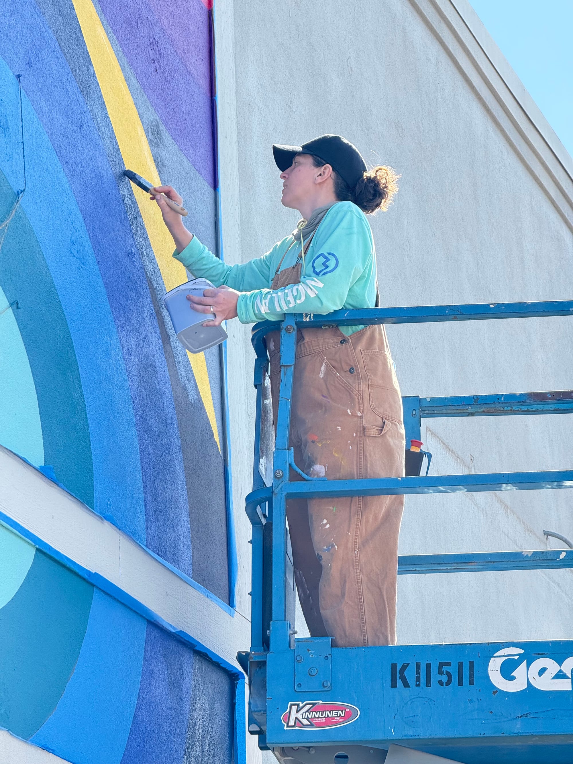 Katie Hoffmeier began her work on the mural Feb. 28, 2025. β Photos by Chris Peters