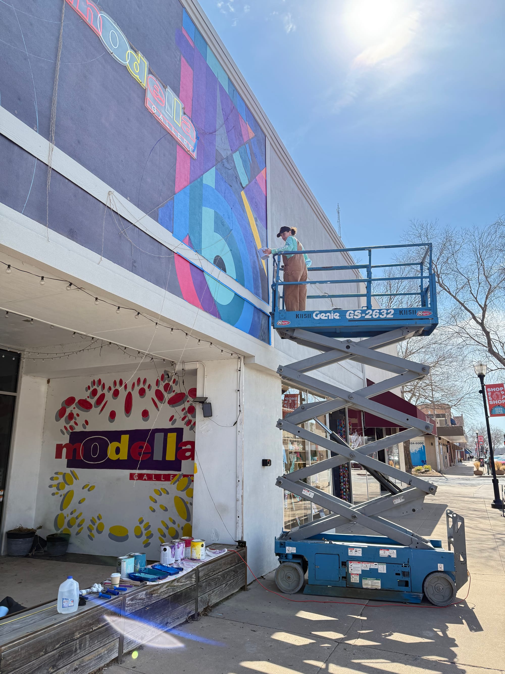 A local artist is transforming the exterior of Modella Art Gallery in Stillwater with a vibrant mural that represents both a personal milestone and a contribution to Main Street's visual landscape.